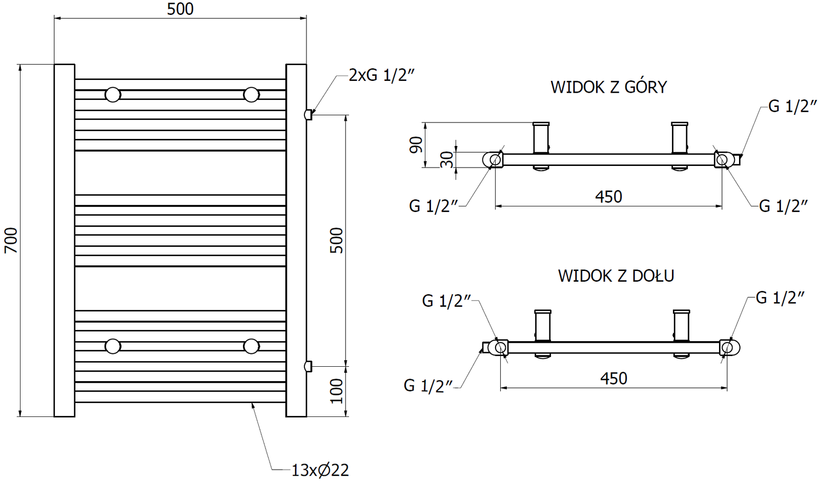 Mexen Mars Seitlicher Badezimmerheizkörper 700 x 500 mm, 284 W, schwarz - W110-0700-500-00-70-S