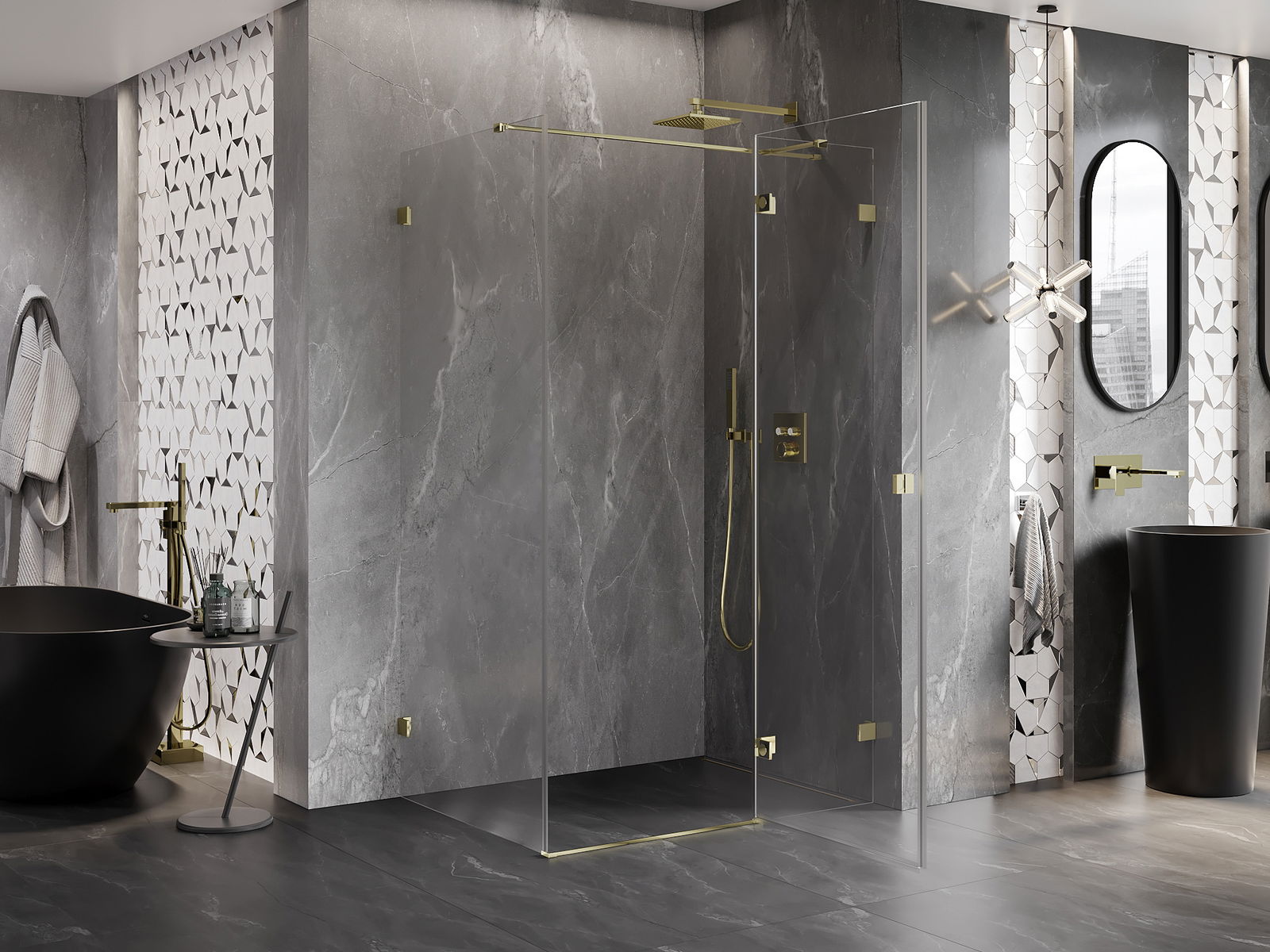 Mexen Lunar T Duschkabine schwenkbar rechts 140 x 70 cm, transparent, gold - 834T-140-070-50-00-P