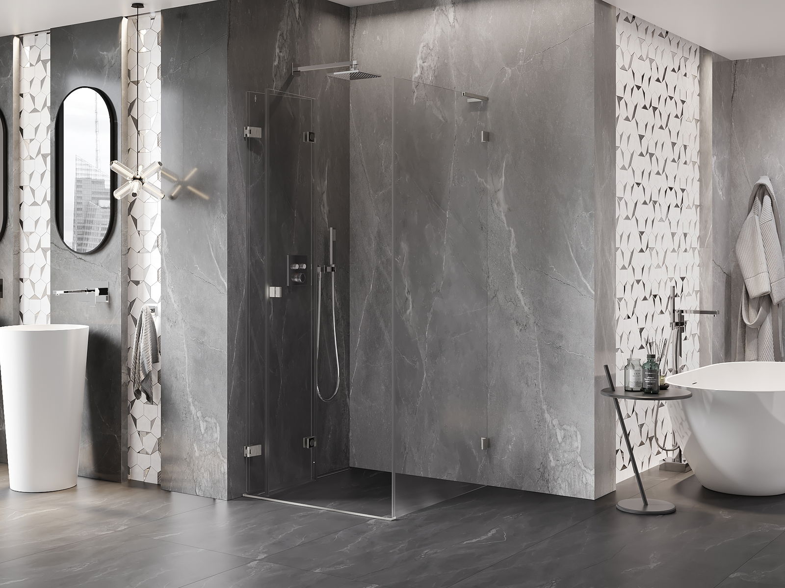 Der handliche und bequeme Griff besteht aus langlebigem und widerstandsfähigem Metall. Die modische Form in Kombination mit einer farblich auf die Profile abgestimmten Oberflächenveredelung verleiht dem Ganzen ein modernes und stilvolles Erscheinungsbild und betont die Ästhetik jedes Badezimmers.
