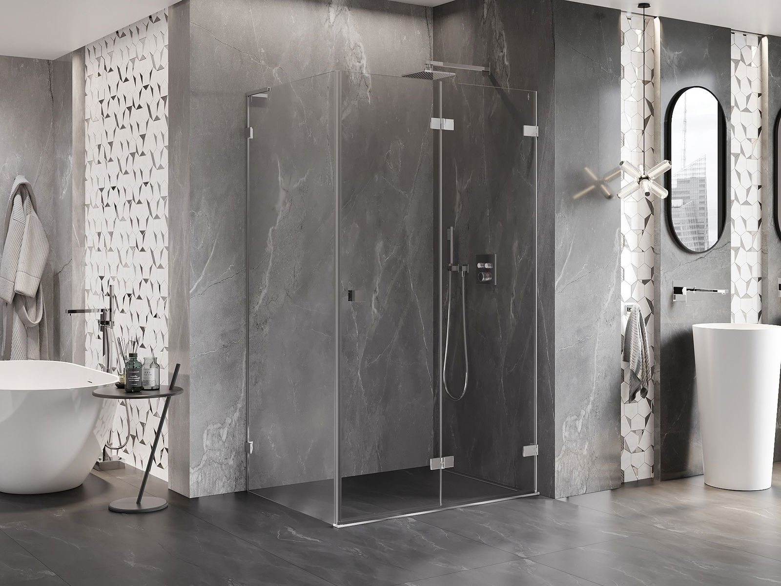 Die Klemmen und Scharniere sind aus sehr haltbarem Messing gefertigt und schließen bündig mit der Glasscheibe ab. Es handelt sich um eine ausgezeichnete Wahl, die Eleganz, Haltbarkeit und modernes Design vereint. Dank solcher Lösungen gewinnen Duschabtrennungen an Ästhetik, während sie gleichzeitig über viele Jahre hinweg eine hohe Funktionalität und Haltbarkeit beibehalten.