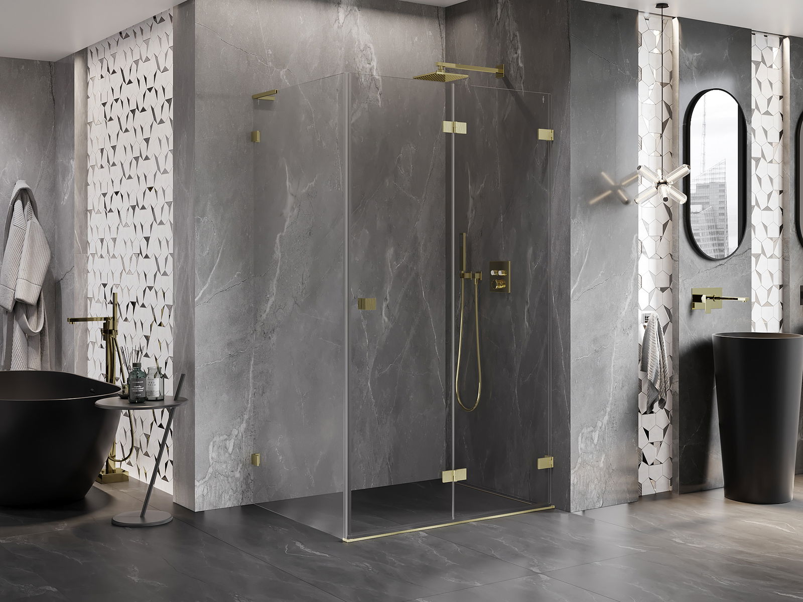 Mexen Lunar-F L faltbare Duschkabine rechts 100 x 90 cm, transparent, gebürstetes Gold - 836L-100-090-55-00-P