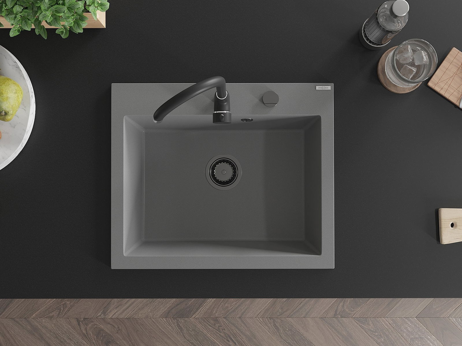 Mexen Elix Granitspüle ein Becken 600 x 500 mm, grau, schwarzer Siphon - 6525601005-71-B