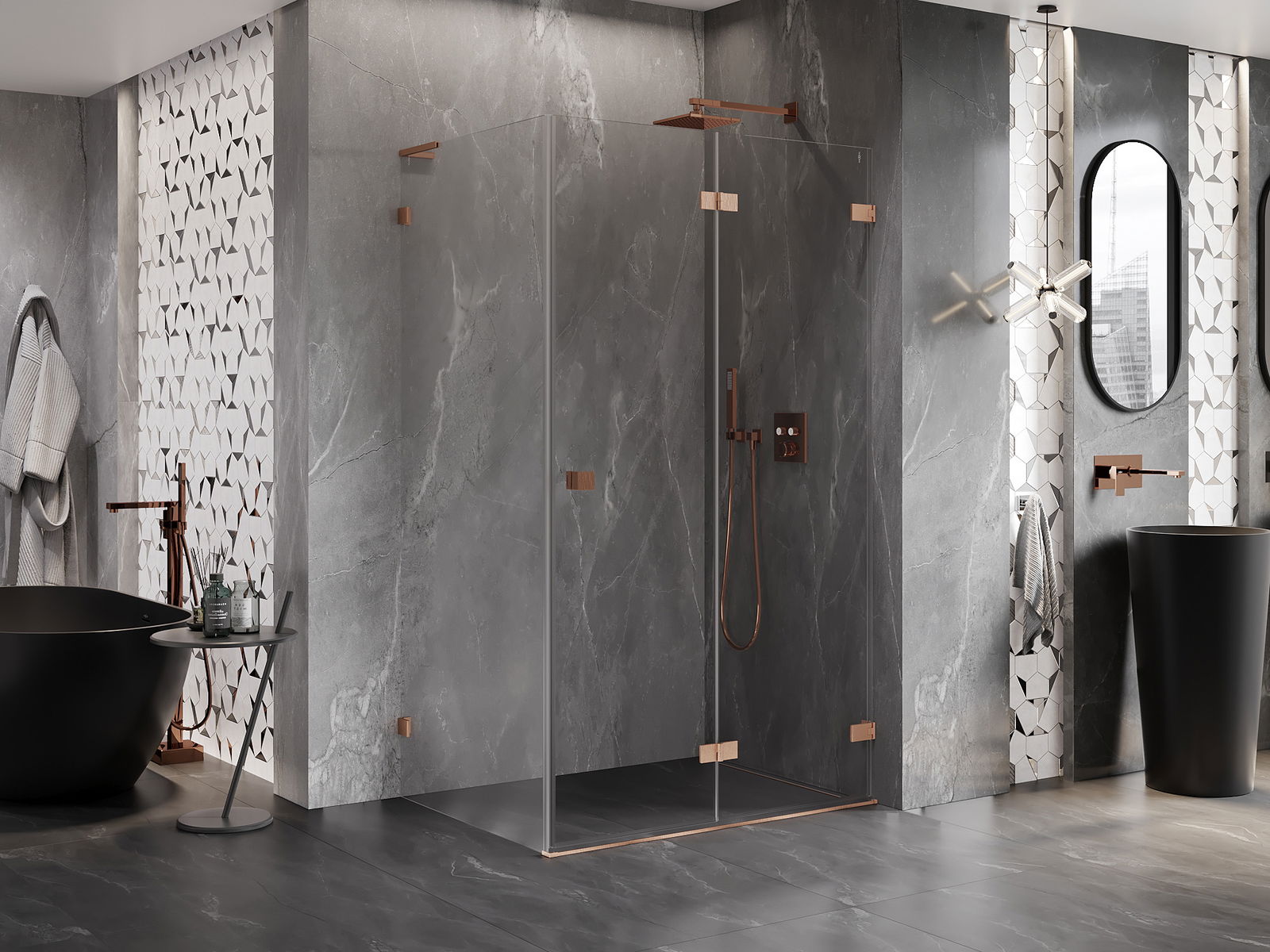 Klammern und Scharniere bestehen aus sehr haltbarem Messing und bilden zudem eine bündige Glasfläche. Dies ist eine ausgezeichnete Wahl, die Eleganz, Haltbarkeit und modernes Design verbindet. Dank solcher Lösungen gewinnt die Dusche an Ästhetik und erleichtert gleichzeitig die Reinigung.
