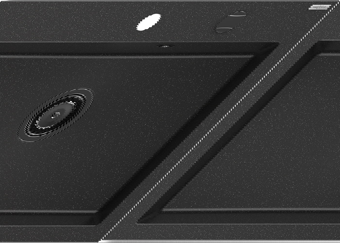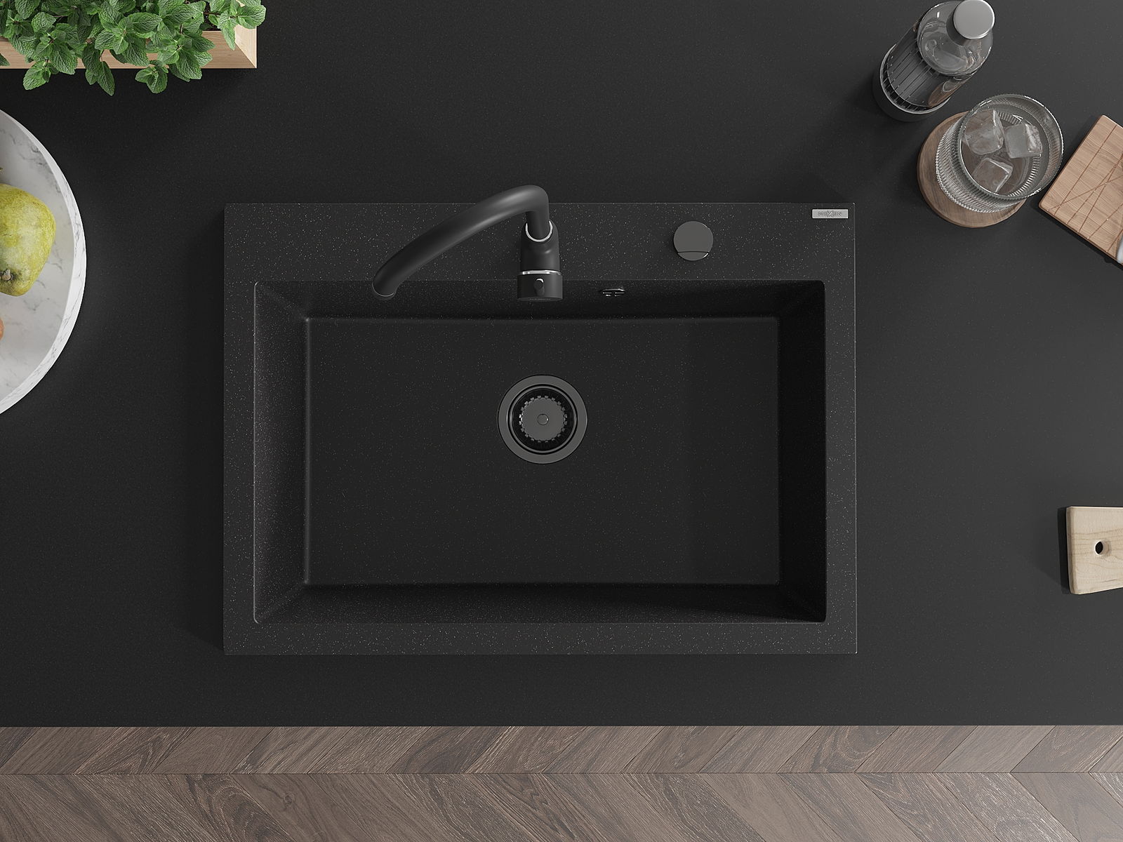 Das Spülbecken verfügt über eine vorgefräste Öffnung mit einem Durchmesser von 35 mm, die selbstständig durchbrochen werden kann. Sie kann unter anderem zur Montage eines Flüssigkeitsdosierers verwendet werden, der das Vorhandensein von Plastikflaschen in der Küche eliminiert und ihr ein elegantes Finish verleiht.