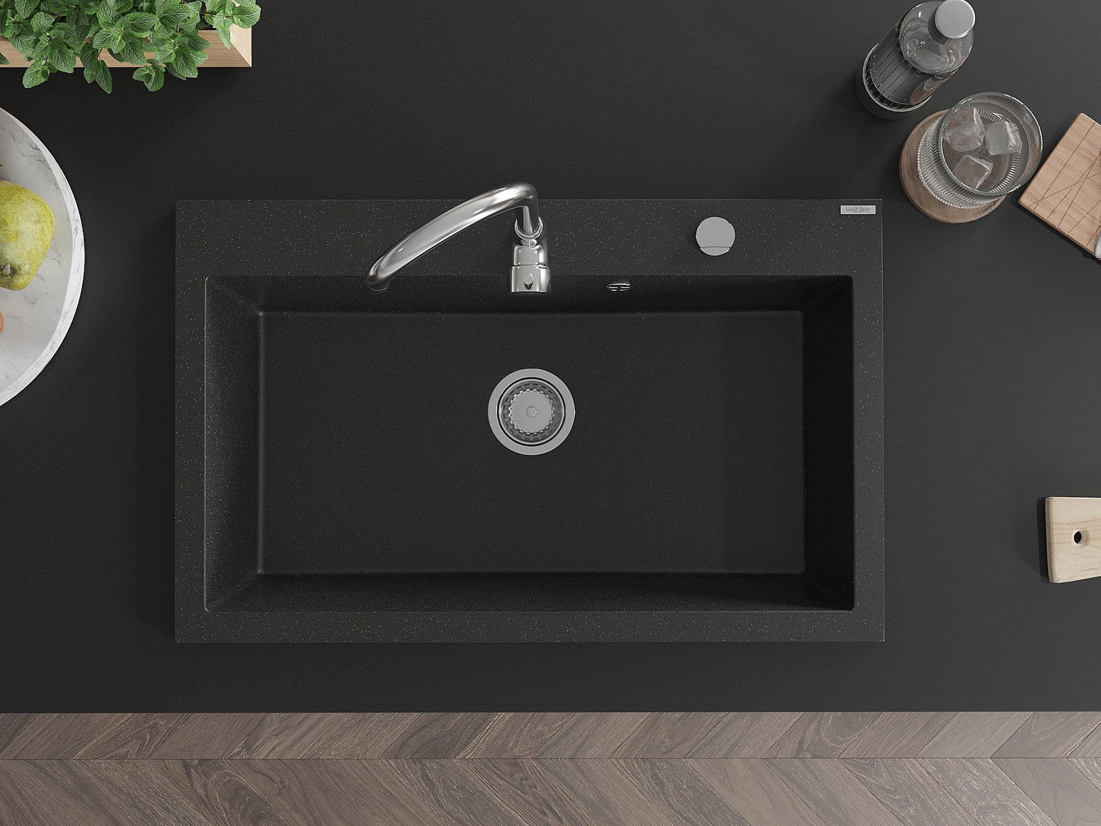 Mexen Elix Granitspüle 1-komorig 800 x 500 mm, schwarz/silbermetallic, Siphon Chrom - 6527801005-73