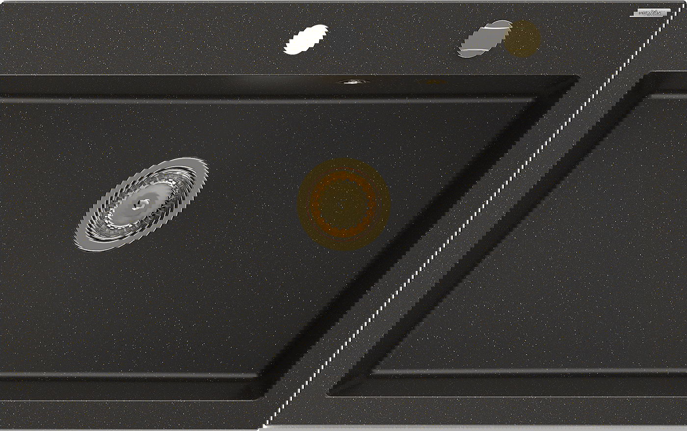 Die Spüle besteht aus hochwertigem Granit. Es ist eine elegante und vor allem praktische Ergänzung zu jeder Küche, unabhängig von ihrem Stil. Hohe Qualität und Granitdauer sorgen für eine langjährige Nutzung.