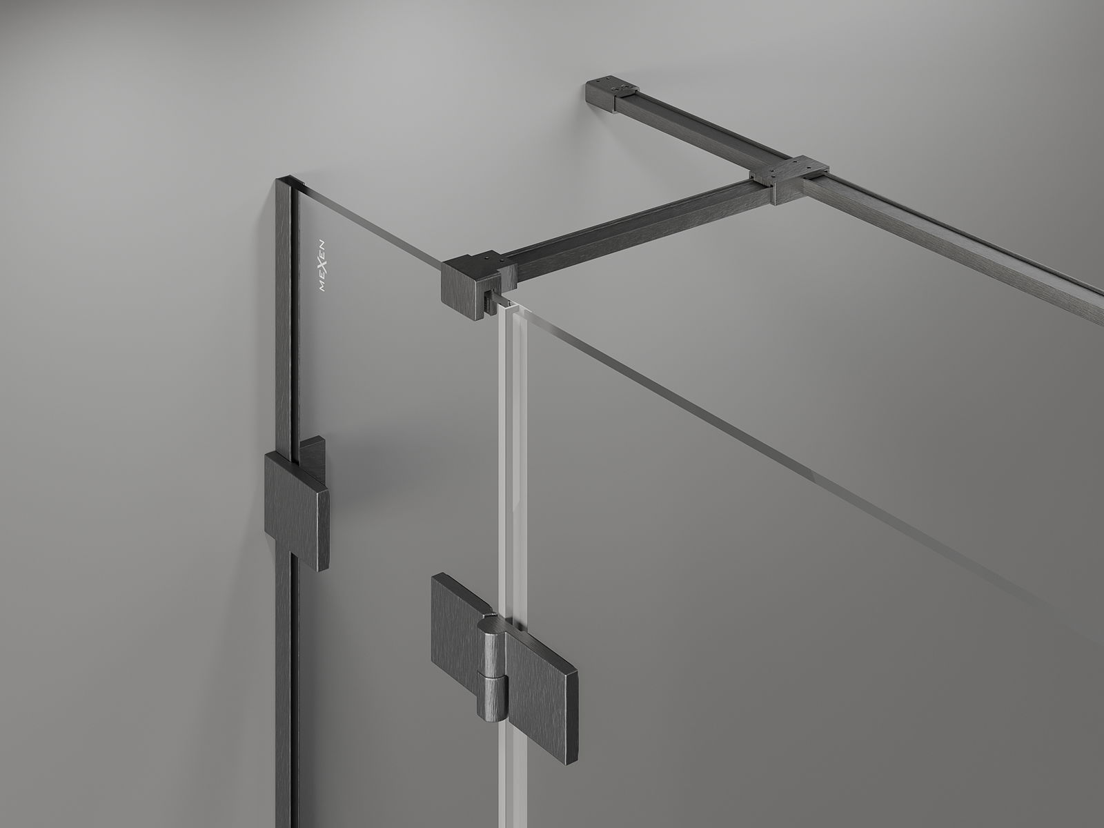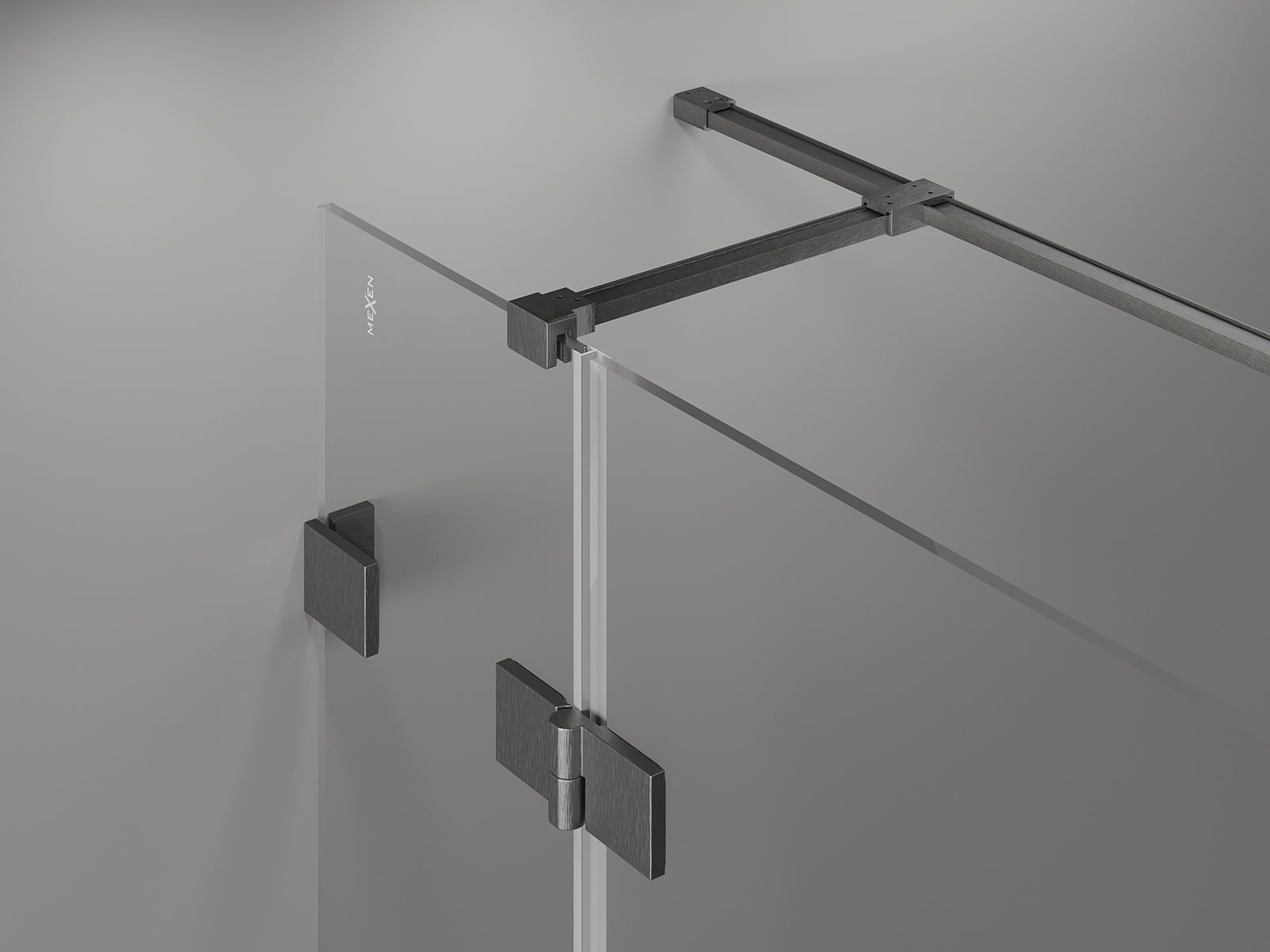 Klammern und Scharniere bestehen aus sehr haltbarem Messing und bilden zudem eine bündige Glasfläche. Dies ist eine ausgezeichnete Wahl, die Eleganz, Haltbarkeit und modernes Design verbindet. Dank solcher Lösungen gewinnt die Dusche an Ästhetik und erleichtert gleichzeitig die Reinigung.