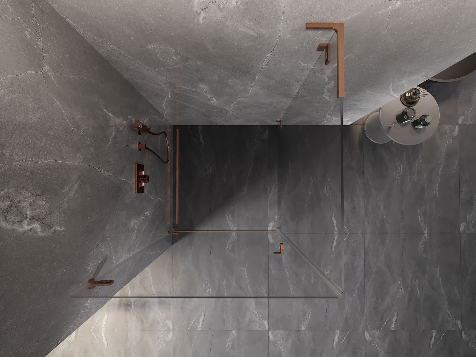 Mexen Lunar-B L Duschkabine schwenkbar links 100 x 100 cm, transparent, gebürstetes Kupfer - 832L-100-100-65-00-L