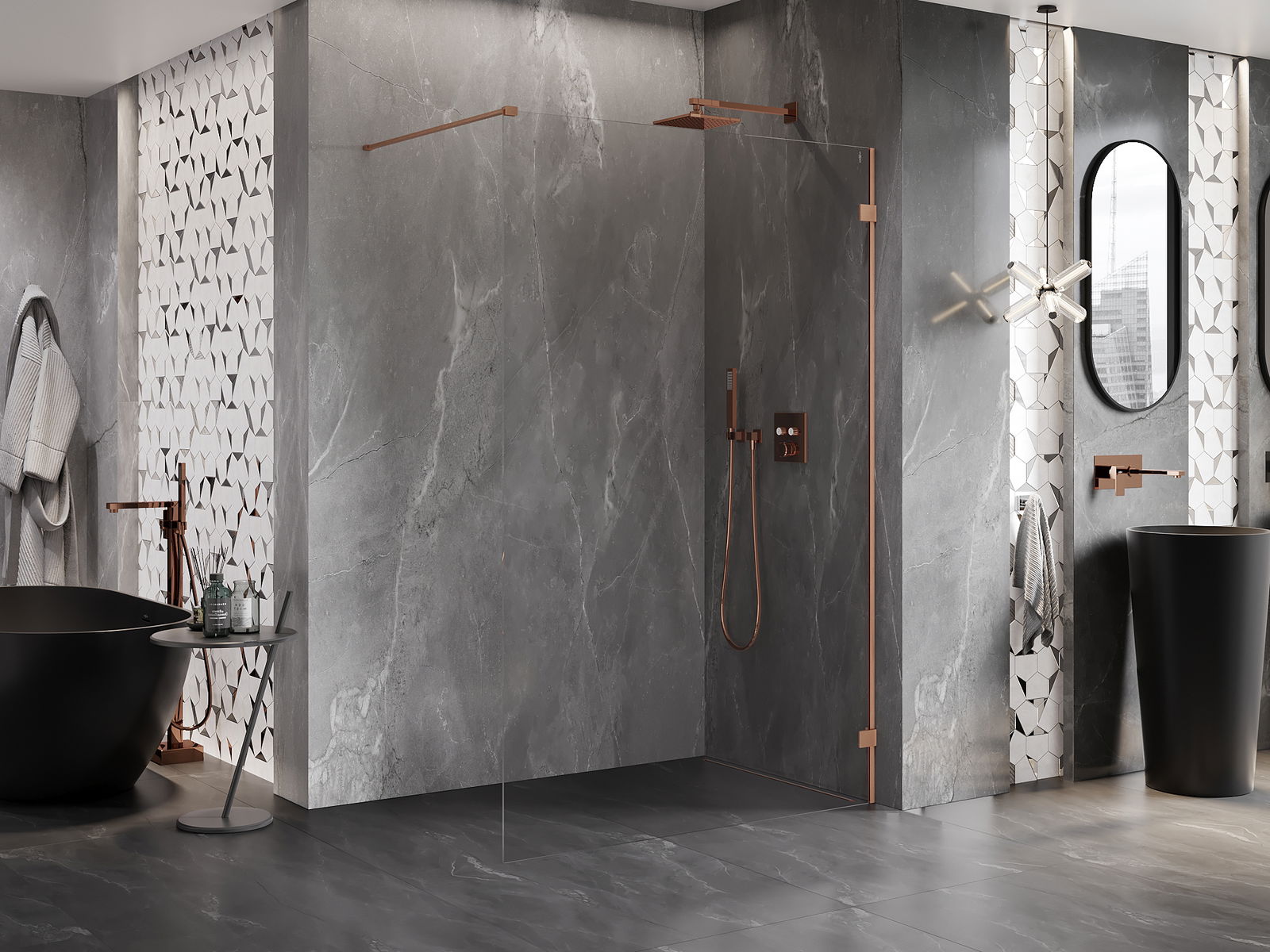 Die begehbare Duschwand ist eine ideale Lösung für Menschen mit Behinderungen. Die offene Kabine bietet einfachen Zugang und beseitigt die Notwendigkeit, Schwellenwerte und Türen zu überwinden. Die Dusche ist komfortabel und freundlich für alle.
