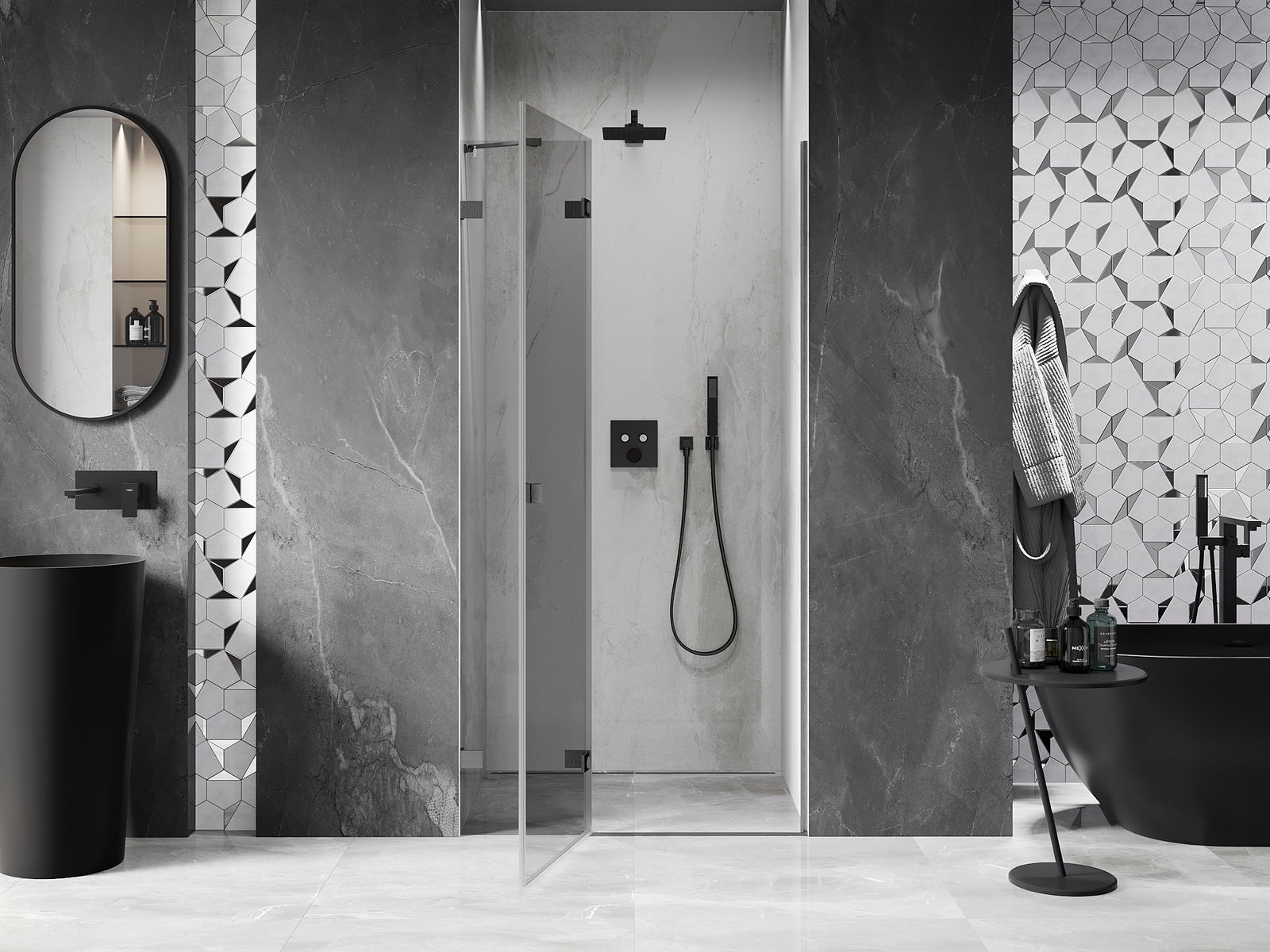 Die Klemmen und Scharniere sind aus sehr haltbarem Messing gefertigt und schließen bündig mit der Glasscheibe ab. Es handelt sich um eine ausgezeichnete Wahl, die Eleganz, Haltbarkeit und modernes Design vereint. Dank solcher Lösungen gewinnen Duschabtrennungen an Ästhetik, während sie gleichzeitig über viele Jahre hinweg eine hohe Funktionalität und Haltbarkeit beibehalten.