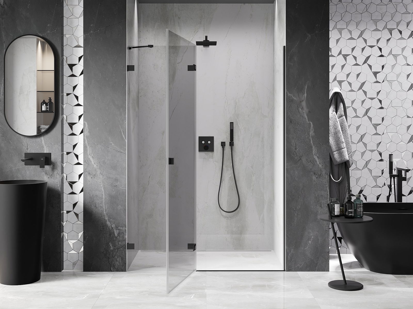 Die Klemmen und Scharniere sind aus sehr haltbarem Messing gefertigt und schließen bündig mit der Glasscheibe ab. Es handelt sich um eine ausgezeichnete Wahl, die Eleganz, Haltbarkeit und modernes Design vereint. Dank solcher Lösungen gewinnen Duschabtrennungen an Ästhetik, während sie gleichzeitig über viele Jahre hinweg eine hohe Funktionalität und Haltbarkeit beibehalten.