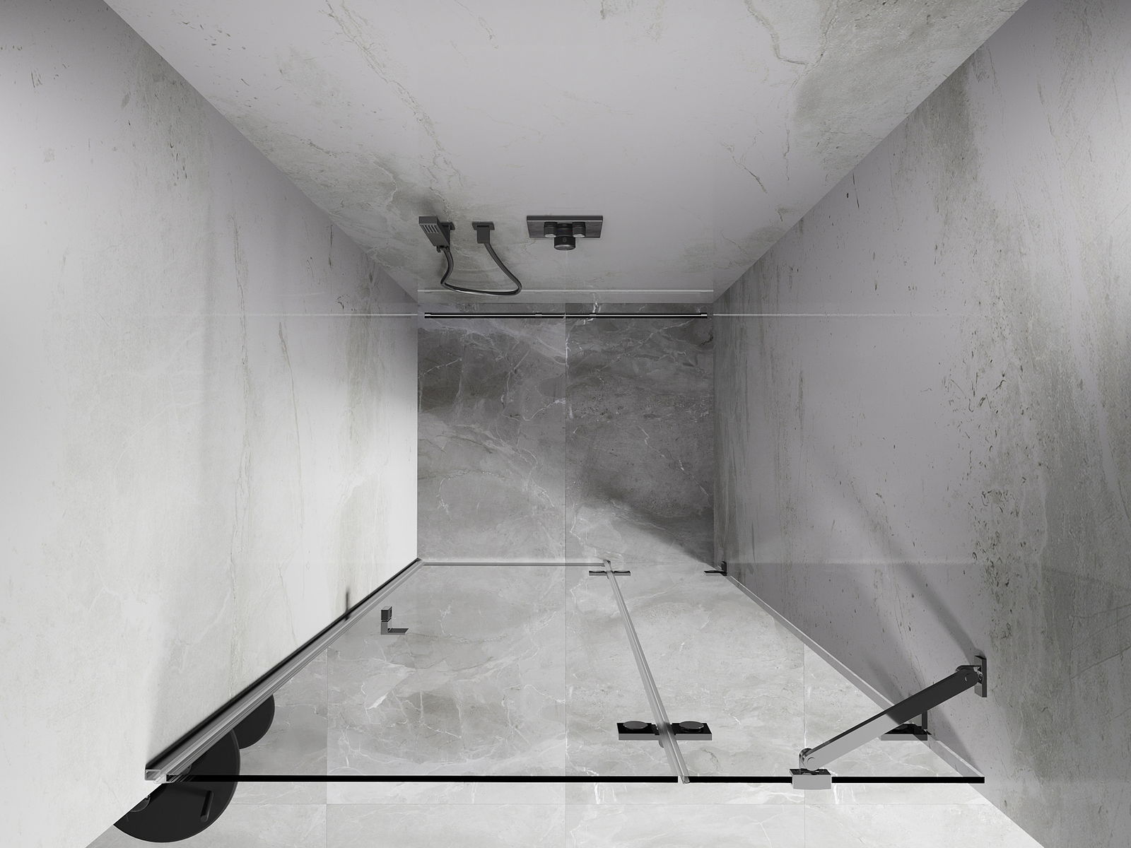 Die Klemmen und Scharniere sind aus sehr haltbarem Messing gefertigt und schließen bündig mit der Glasscheibe ab. Es handelt sich um eine ausgezeichnete Wahl, die Eleganz, Haltbarkeit und modernes Design vereint. Dank solcher Lösungen gewinnen Duschabtrennungen an Ästhetik, während sie gleichzeitig über viele Jahre hinweg eine hohe Funktionalität und Haltbarkeit beibehalten.