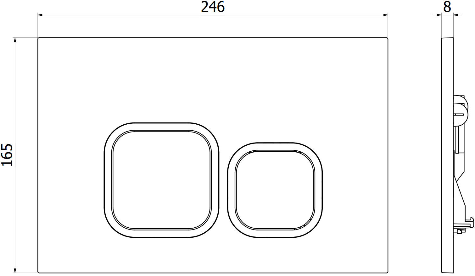 Die Taste ist für die Aufputzrahmen konzipiert, bei denen sich der Montageort an der Vorderseite der Konstruktion befindet. Durch diese Positionierung wird ein einfacher Zugang und eine bequeme Bedienung der Spülung gewährleistet.