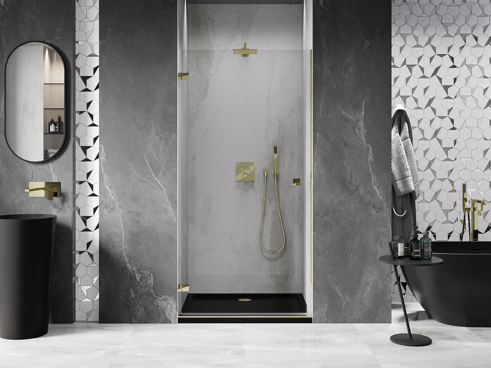 Mexen Lunar-B linke, schwenkbare Duschabtrennung 95 cm, transparent, gold - 832-095-000-50-00-L