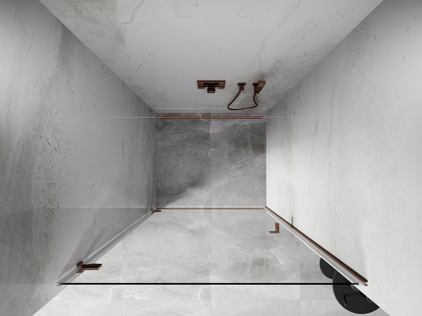 Die Klammern bestehen aus sehr haltbarem Messing und bilden zusätzlich eine flächenbündige Glasscheibe. Dies ist eine ausgezeichnete Wahl, die Eleganz, Haltbarkeit und modernes Design verbindet. Dank solcher Lösungen gewinnt die Dusche an Ästhetik und erleichtert gleichzeitig die Sauberkeit.