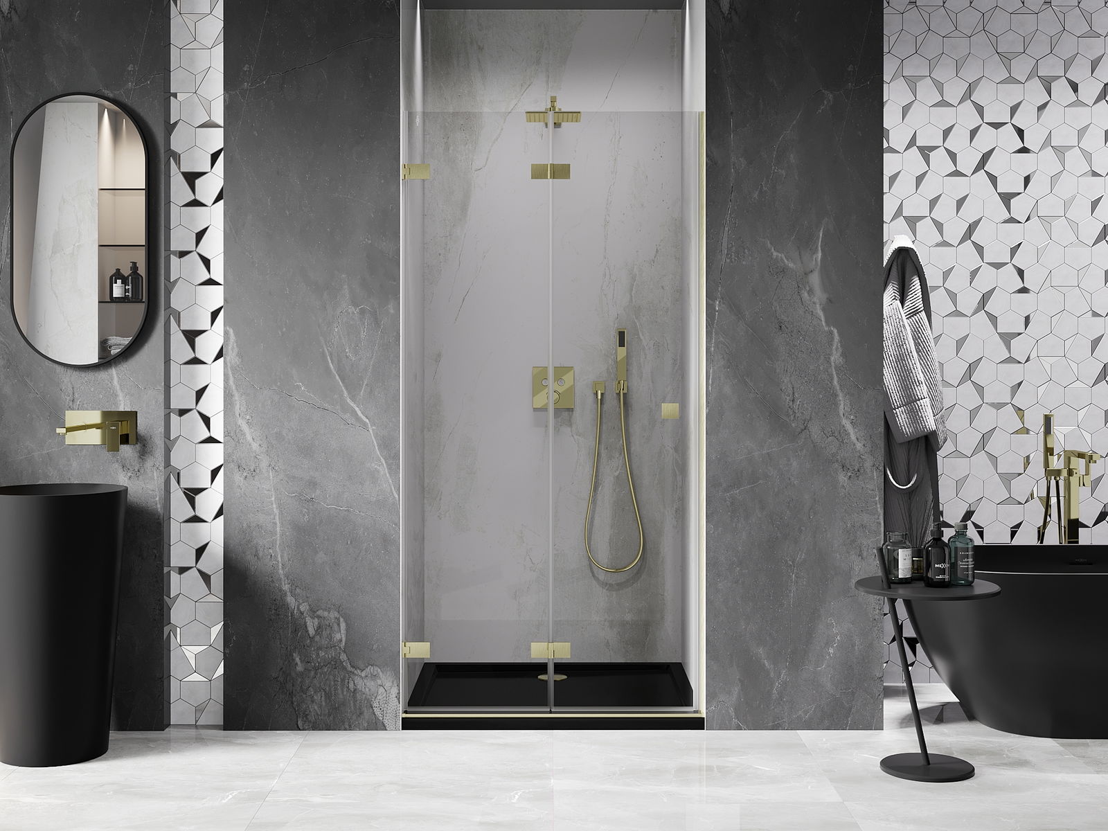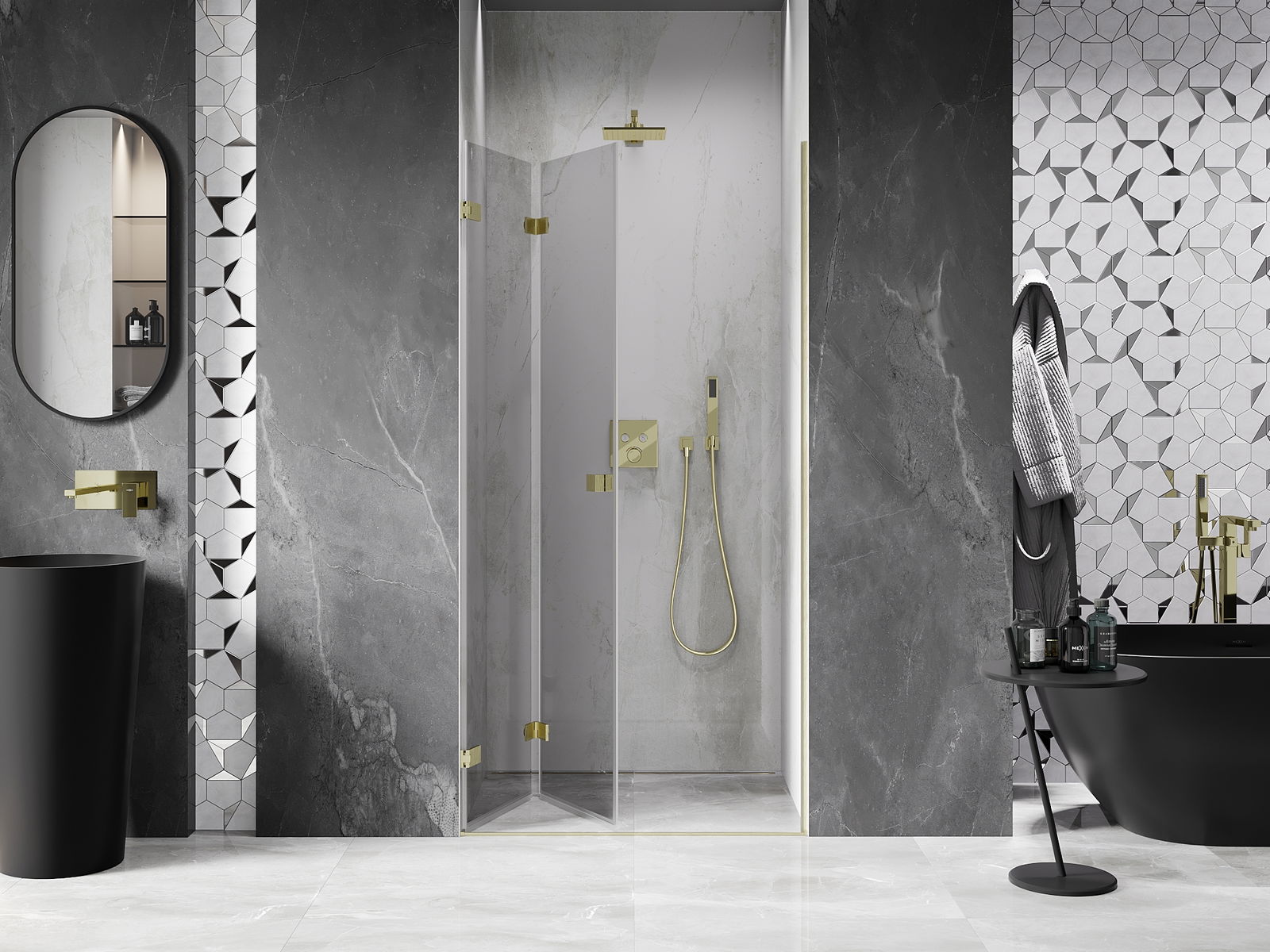 Mexen Lunar-F faltbare Duschabtrennung links 70 cm, transparent, gebürstetes Gold - 836-070-000-55-00-L