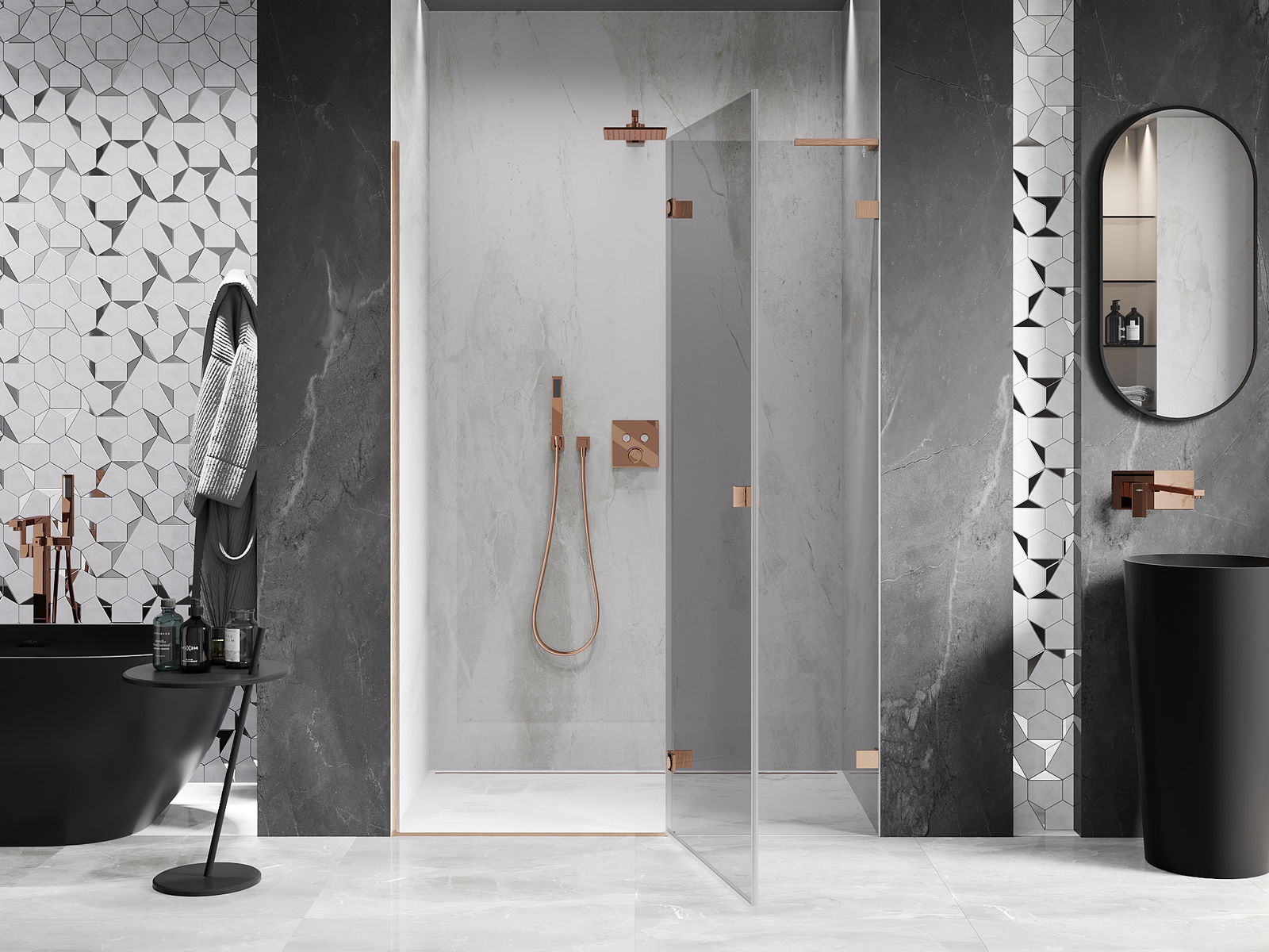 Mexen Lunar L Duschdrehtür rechts 140 cm, transparent, gebürstetes Kupfer - 834L-140-000-65-00-P