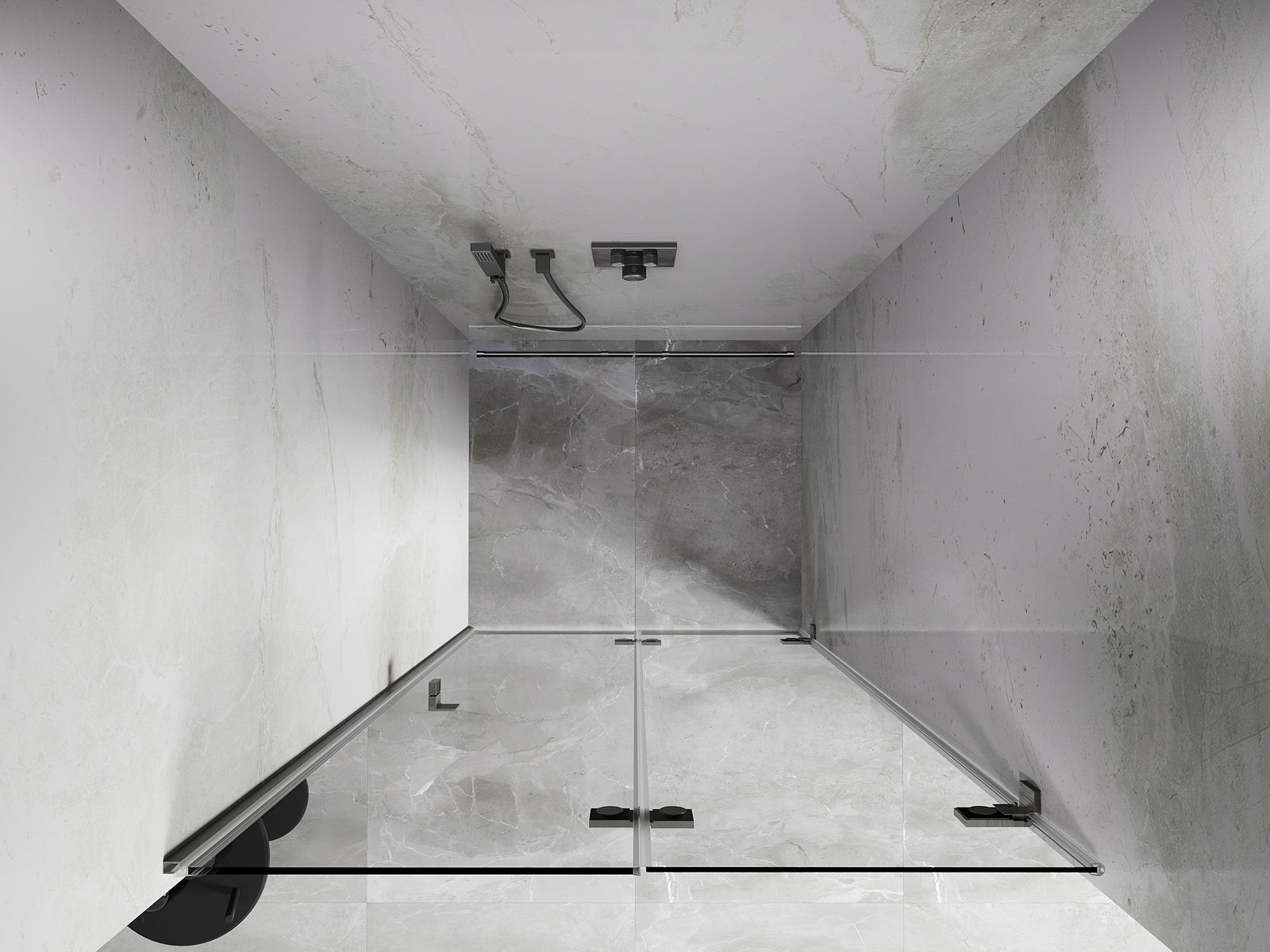 Die Klemmen und Scharniere sind aus sehr haltbarem Messing gefertigt und schließen bündig mit der Glasscheibe ab. Es handelt sich um eine ausgezeichnete Wahl, die Eleganz, Haltbarkeit und modernes Design vereint. Dank solcher Lösungen gewinnen Duschabtrennungen an Ästhetik, während sie gleichzeitig über viele Jahre hinweg eine hohe Funktionalität und Haltbarkeit beibehalten.