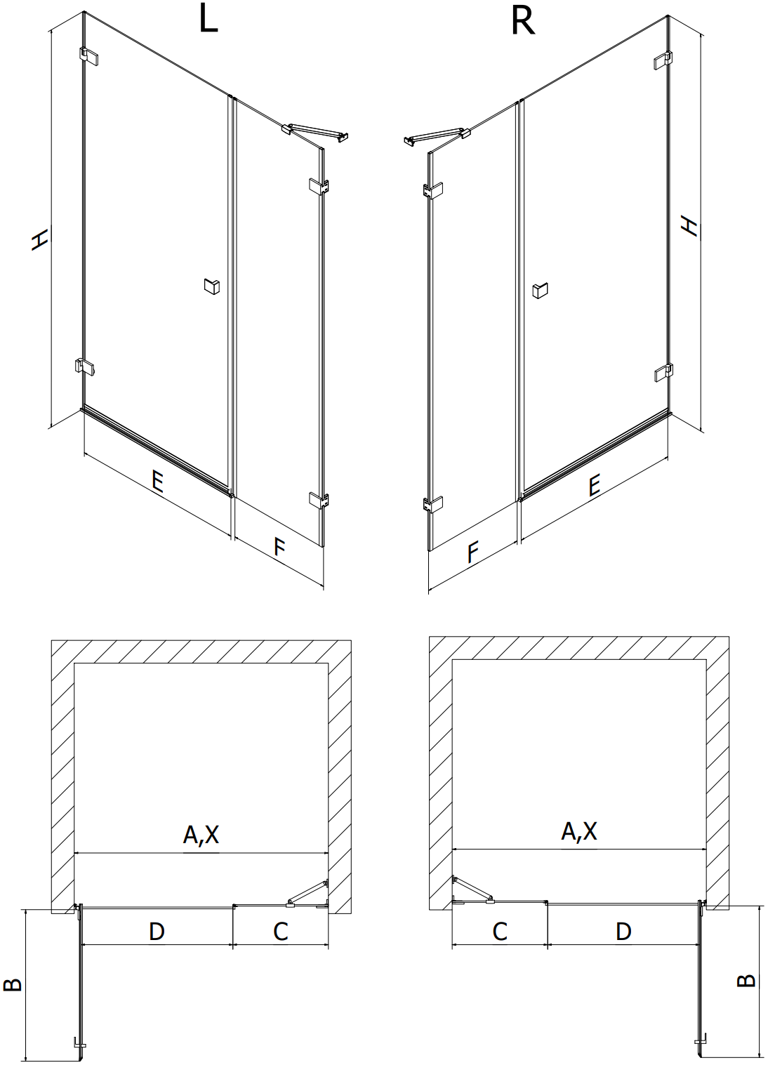 Glasdicke: Türen 6 mm, Wand 8 mm