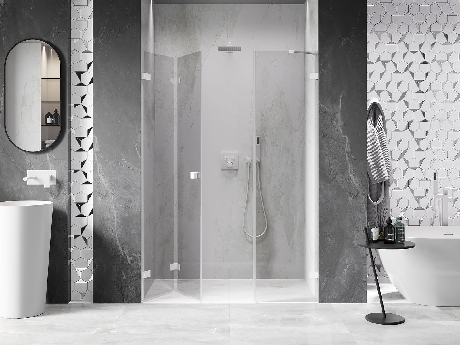 Die Möglichkeit, die Türen sowohl nach außen als auch nach innen zu falten, schafft mehr Raum, wenn die Dusche nicht benutzt wird. Dies ist die ideale Lösung für kleinere Badezimmer, da sie die verfügbare Fläche optimal nutzt.