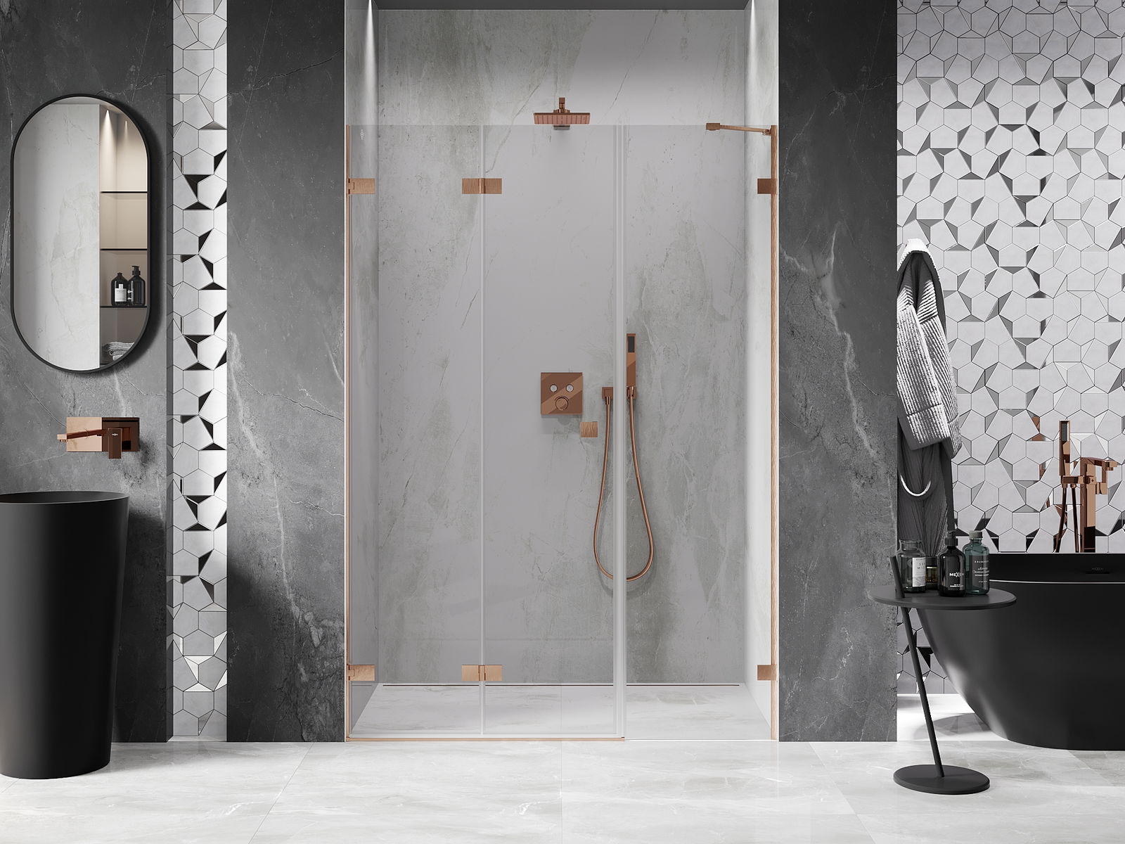 Mexen Lunar-F faltbare Duschwand links 135 cm, transparent, gebürstetes Kupfer - 836S-135-050-65-00-L