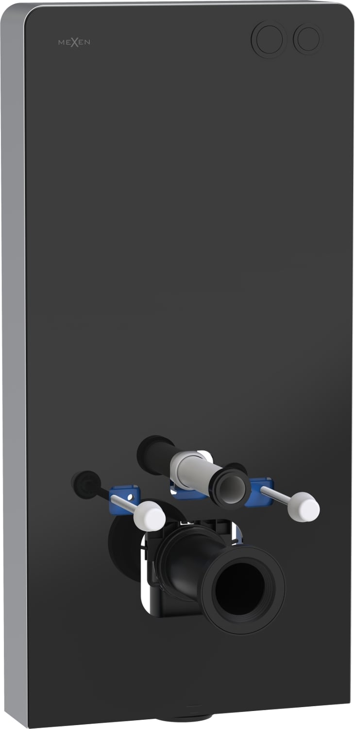 Der Mexen Tex Air G ist ein eleganter Vorwandrahmen mit einem außergewöhnlichen Design, ideal für moderne Innenräume. Dank der gehärteten, schwarzen Glasfront und des gebürsteten Aluminiums an den Seiten passt der Rahmen perfekt zu verschiedenen Badezimmerstilen. Das Produkt mit den Abmessungen 103 cm Höhe, 50 cm Breite und 12 cm Dicke ist mit einem pneumatischen Spülknopf ausgestattet, der die Regulierung der Wassermenge (3/6 L) ermöglicht. Es ist universell einsetzbar und passt zu Hänge- sowie Stand-WCs (Öffnungen 18 oder 23 cm), was es zu einer hervorragenden Wahl für verschiedenste Badezimmerlösungen macht.