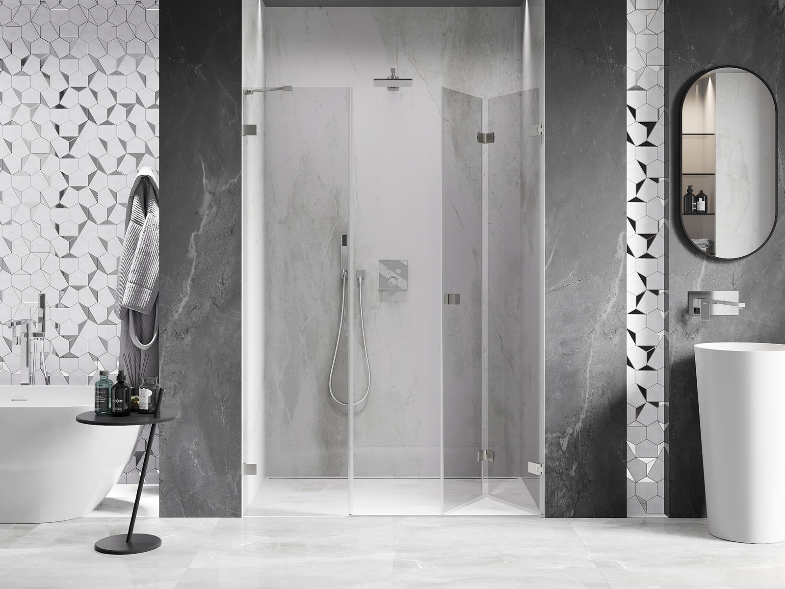 Die Möglichkeit, die Türen sowohl nach außen als auch nach innen zu falten, schafft mehr Raum, wenn die Dusche nicht benutzt wird. Dies ist die ideale Lösung für kleinere Badezimmer, da sie die verfügbare Fläche optimal nutzt.