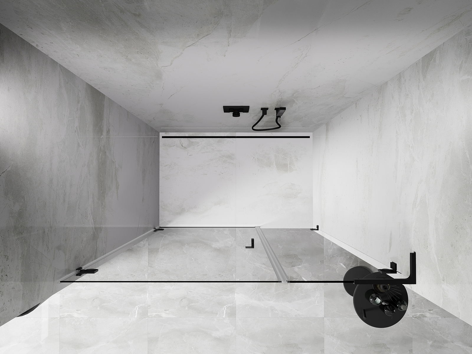 Das Produkt kann je nach Bedarf sowohl auf einer Duschwanne als auch direkt auf dem Boden montiert werden. Die universelle Montagemethode ermöglicht die Anpassung des Produkts an verschiedene Arten von Badezimmern und Raumkonfigurationen.