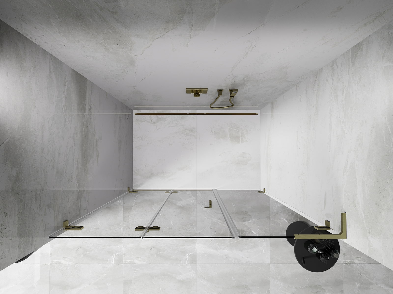Mexen Lunar-F L faltbare Duschwand links 125 cm, transparent, gebürstetes Gold - 836SL-125-050-55-00-L