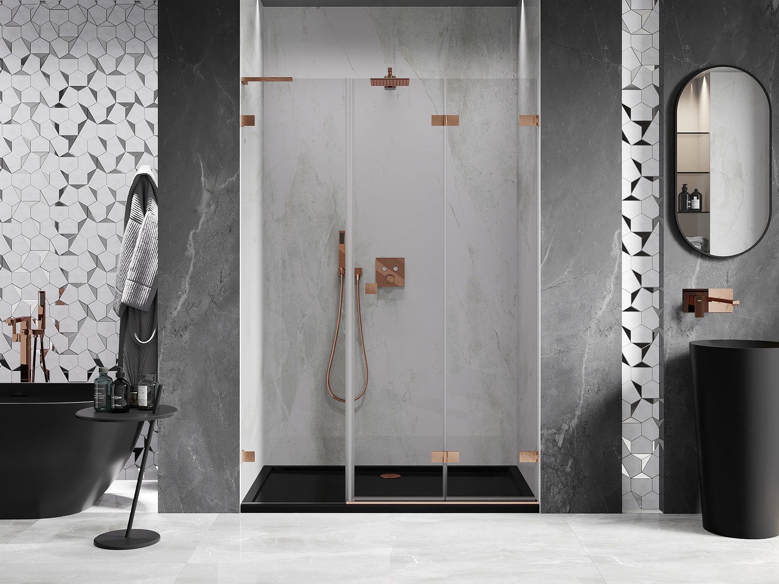 Mexen Lunar-F L Falttür für die Dusche, rechts 130 cm, transparent, gebürstetes Kupfer - 836SL-130-050-65-00-P
