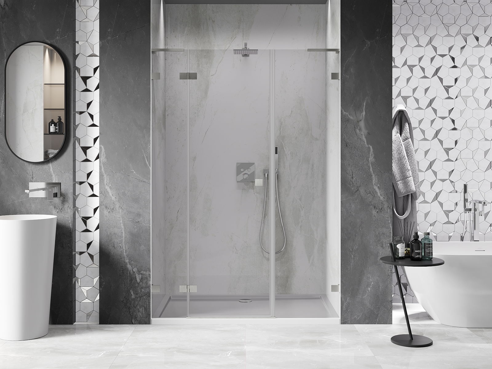 Klammern und Scharniere bestehen aus sehr haltbarem Messing und bilden zudem eine bündige Glasfläche. Dies ist eine ausgezeichnete Wahl, die Eleganz, Haltbarkeit und modernes Design verbindet. Dank solcher Lösungen gewinnt die Dusche an Ästhetik und erleichtert gleichzeitig die Reinigung.