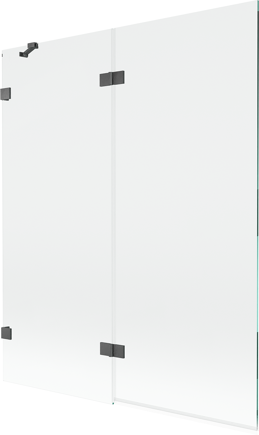 Eine Paravent, bestehend aus zwei Flügeln, die zusammengefaltet werden können. Eine solche Lösung spart Platz im Badezimmer und ermöglicht eine freie Nutzung des verbleibenden Raums, wenn der Badebereich nicht genutzt wird.