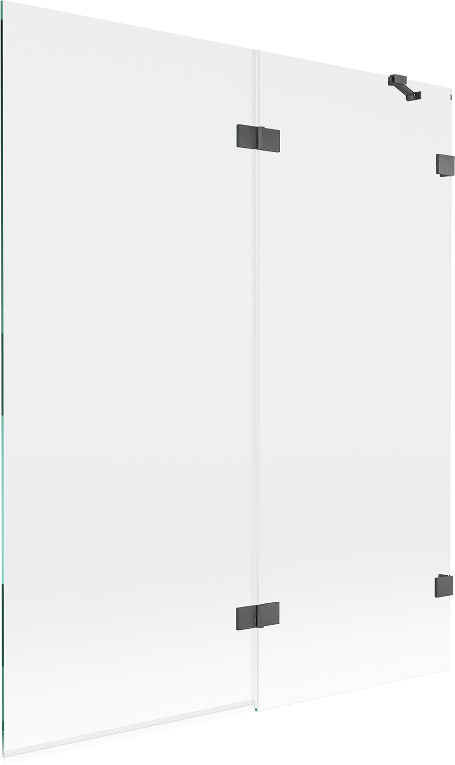 Eine Paravent, bestehend aus zwei Flügeln, die zusammengefaltet werden können. Eine solche Lösung spart Platz im Badezimmer und ermöglicht eine freie Nutzung des verbleibenden Raums, wenn der Badebereich nicht genutzt wird.