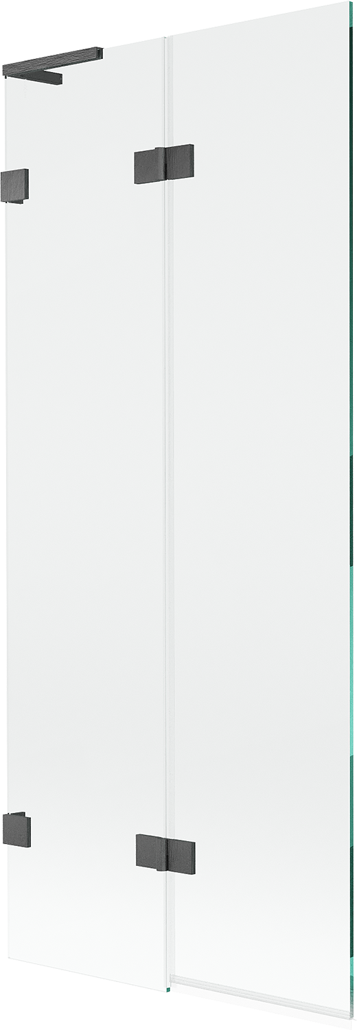 Eine Paravent, bestehend aus zwei Flügeln, die zusammengefaltet werden können. Eine solche Lösung spart Platz im Badezimmer und ermöglicht eine freie Nutzung des verbleibenden Raums, wenn der Badebereich nicht genutzt wird.