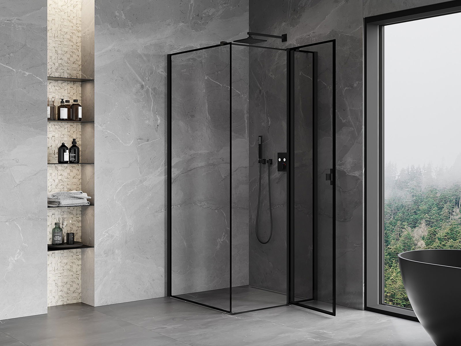 Mexen Mist T Duschkabine aufklappbar rechts 80 x 80 cm, schwarzer Rahmen, schwarz - 8A4T-080-080-70-70-P