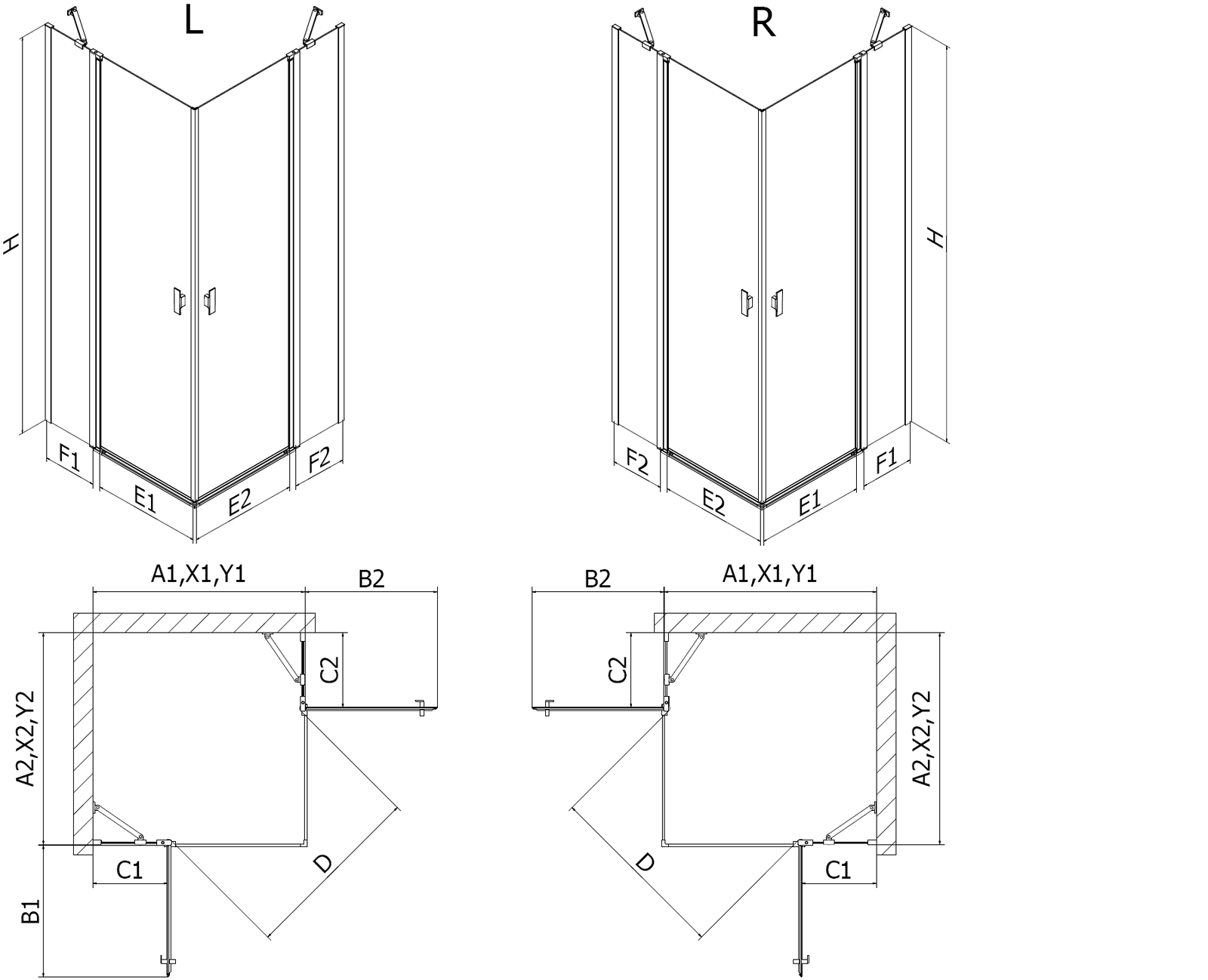 Dank der Verwendung eines universellen Montagesystems können die Duschtüren je nach Ihren Bedürfnissen rechts oder links montiert werden. Dank dessen können Sie problemlos eine Dusche entwerfen, die auf den Raum des Badezimmers zugeschnitten ist.