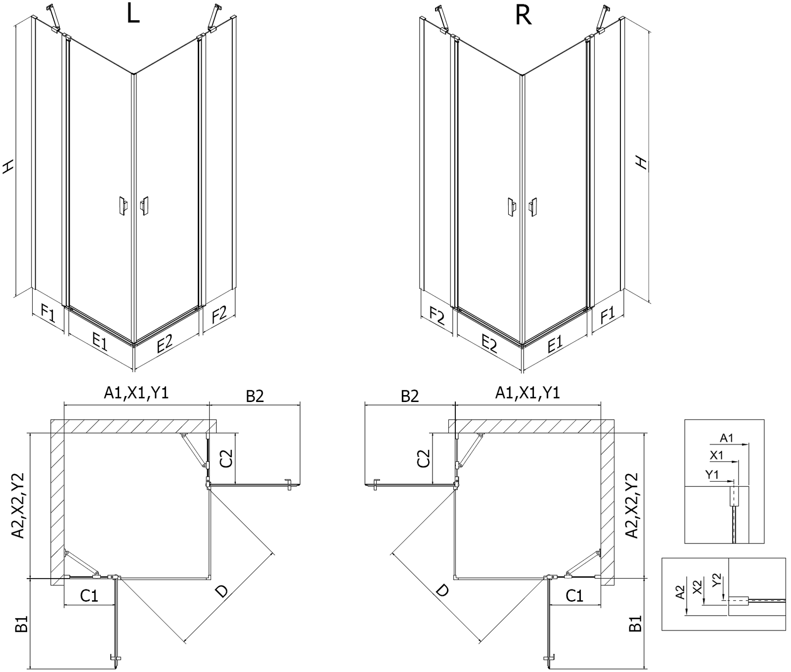 Dank des universellen Montagesystems können die Duschtüren je nach Bedarf auf der rechten oder linken Seite montiert werden. So können Sie problemlos eine Dusche entwerfen, die an den Raum im Badezimmer angepasst ist.