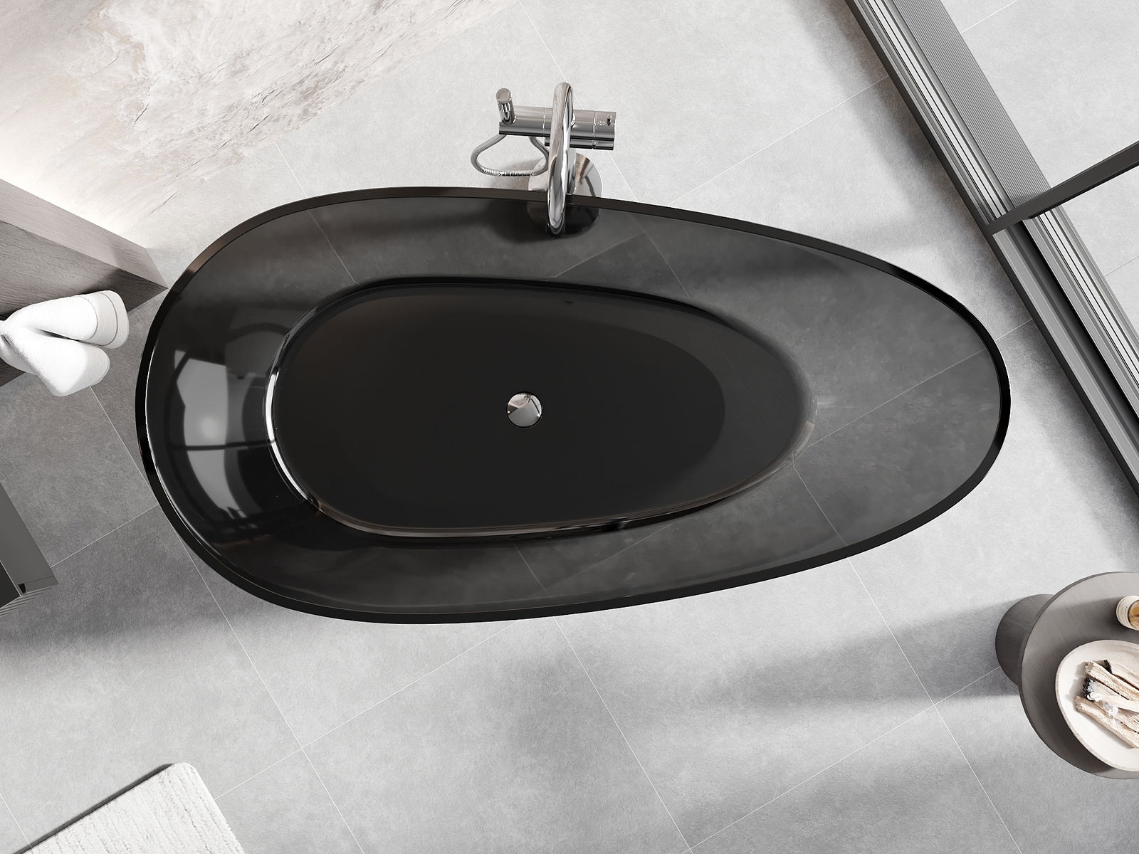 Es ist ein modernes Material, das elegantes Aussehen mit hoher Haltbarkeit verbindet. Es ist widerstandsfähig gegen mechanische Beschädigungen, leicht zu reinigen und angenehm zu berühren. Die transparente Form und der dünne Wannenrand verleihen ihm Leichtigkeit und einen einzigartigen Charakter, wodurch es zu einem eindrucksvollen Akzent in der Badezimmergestaltung wird.