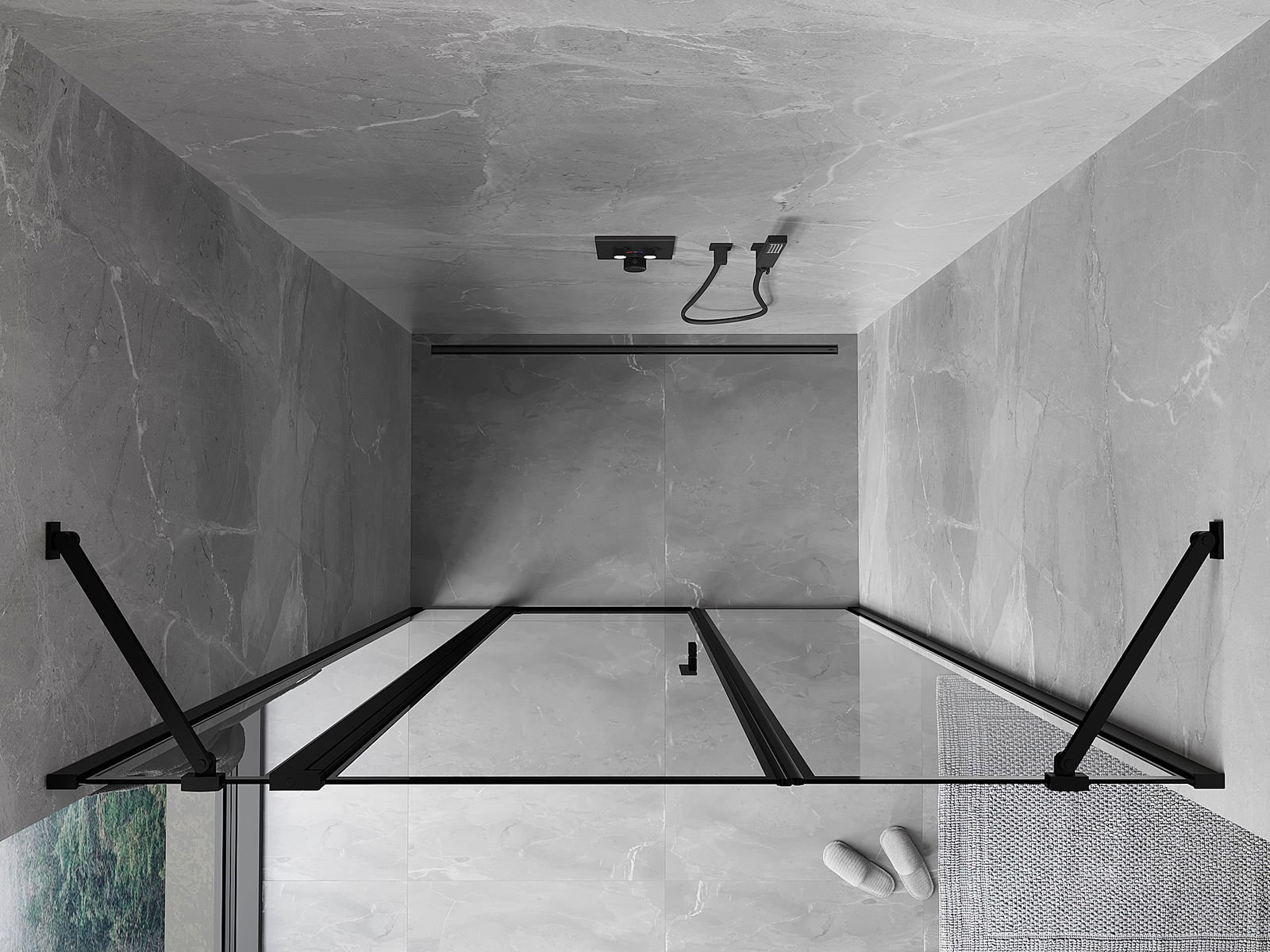 Mexen Mist klappbare Duschwand links 155 cm, schwarzer Rahmen, schwarz - 8A4-155-001-70-70-L