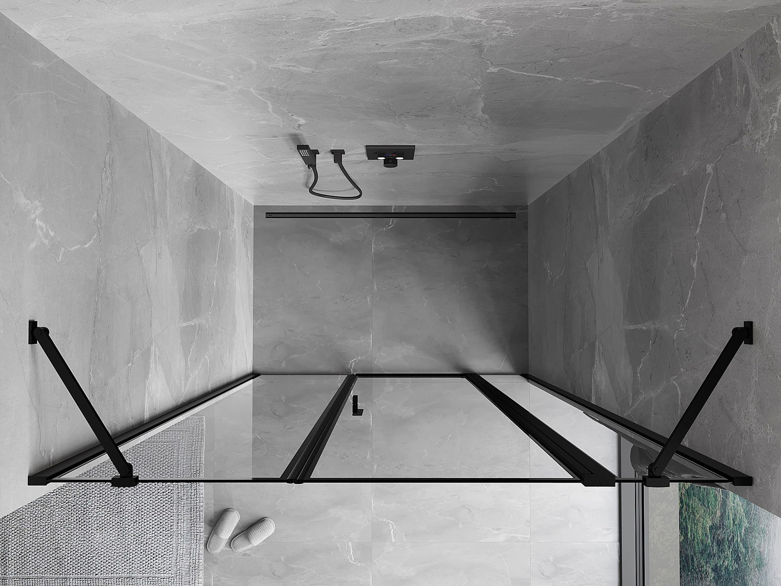 Das Produkt kann je nach Bedarf sowohl auf einer Duschwanne als auch direkt auf dem Boden montiert werden. Die universelle Montagemethode ermöglicht die Anpassung des Produkts an verschiedene Arten von Badezimmern und Raumkonfigurationen.