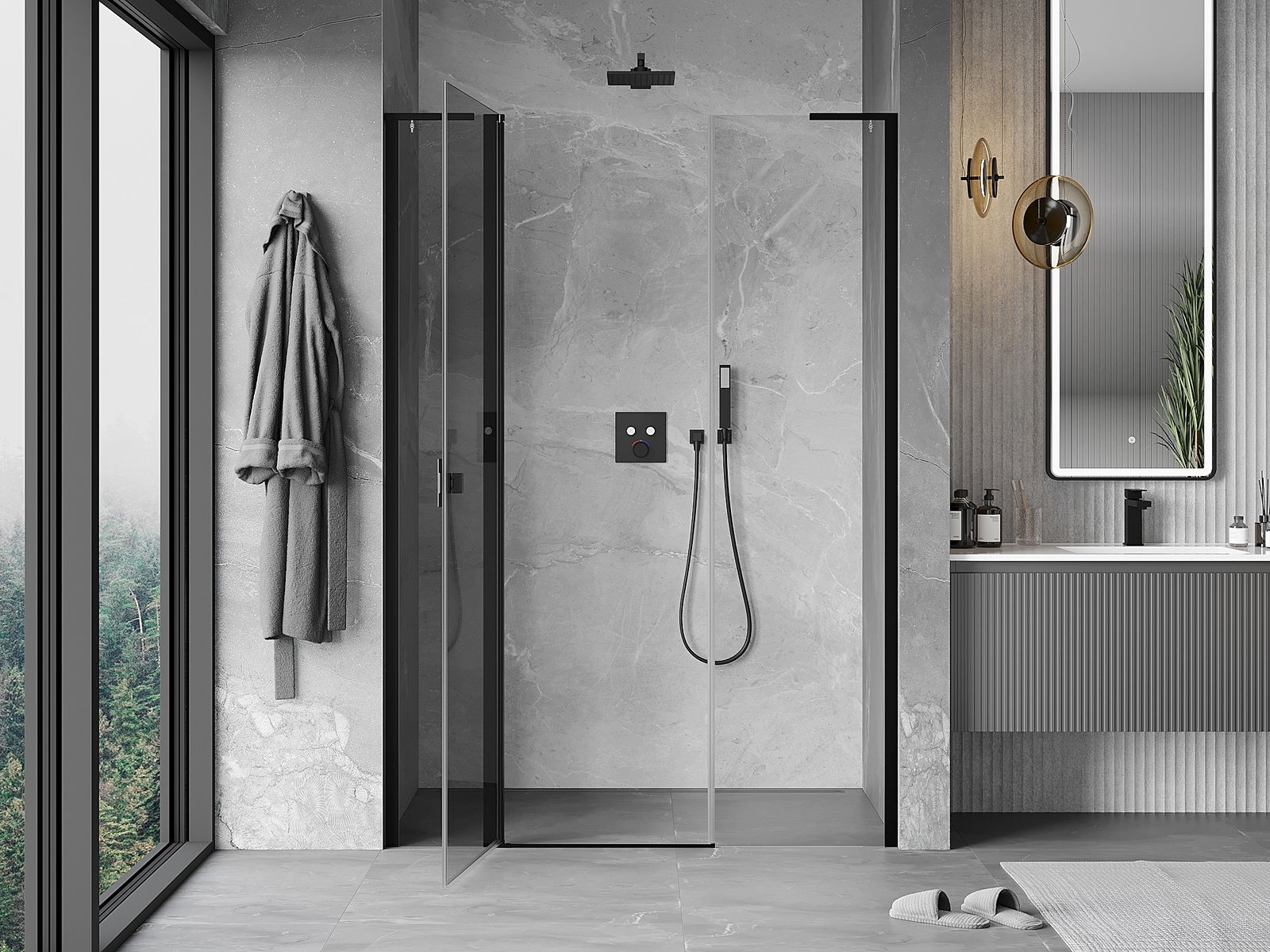 Der handliche und bequeme Griff besteht aus langlebigem und widerstandsfähigem Metall. Die modische Form in Kombination mit einer farblich auf die Profile abgestimmten Oberflächenveredelung verleiht dem Ganzen ein modernes und stilvolles Erscheinungsbild und betont die Ästhetik jedes Badezimmers.
