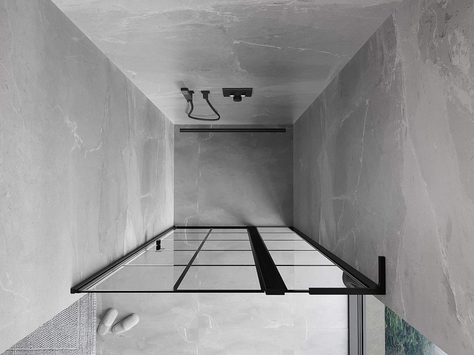 Mexen Mist L Duschtür rechts schwenkbar 115 cm, schwarzes Gitter, schwarz - 8A4L-115-000-70-77-P