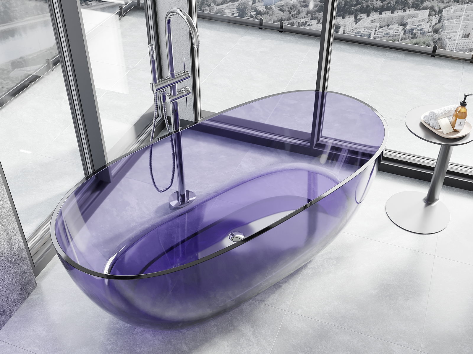 Es ist ein modernes Material, das elegantes Aussehen mit hoher Haltbarkeit verbindet. Es ist widerstandsfähig gegen mechanische Beschädigungen, leicht zu reinigen und angenehm zu berühren. Die transparente Form und der dünne Wannenrand verleihen ihm Leichtigkeit und einen einzigartigen Charakter, wodurch es zu einem eindrucksvollen Akzent in der Badezimmergestaltung wird.