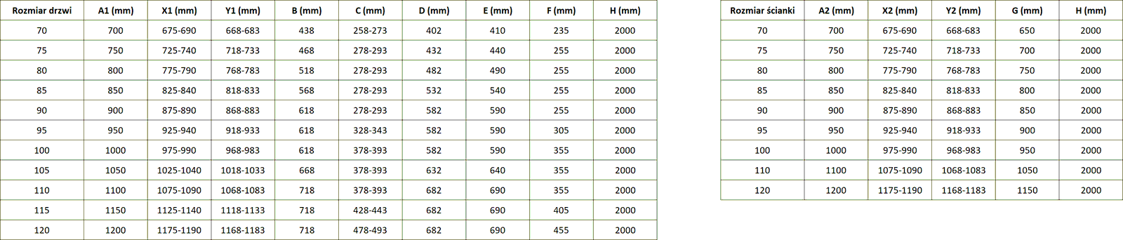 Größe: 95x100 cm (linke Tür 95 cm, Wand 100 cm)