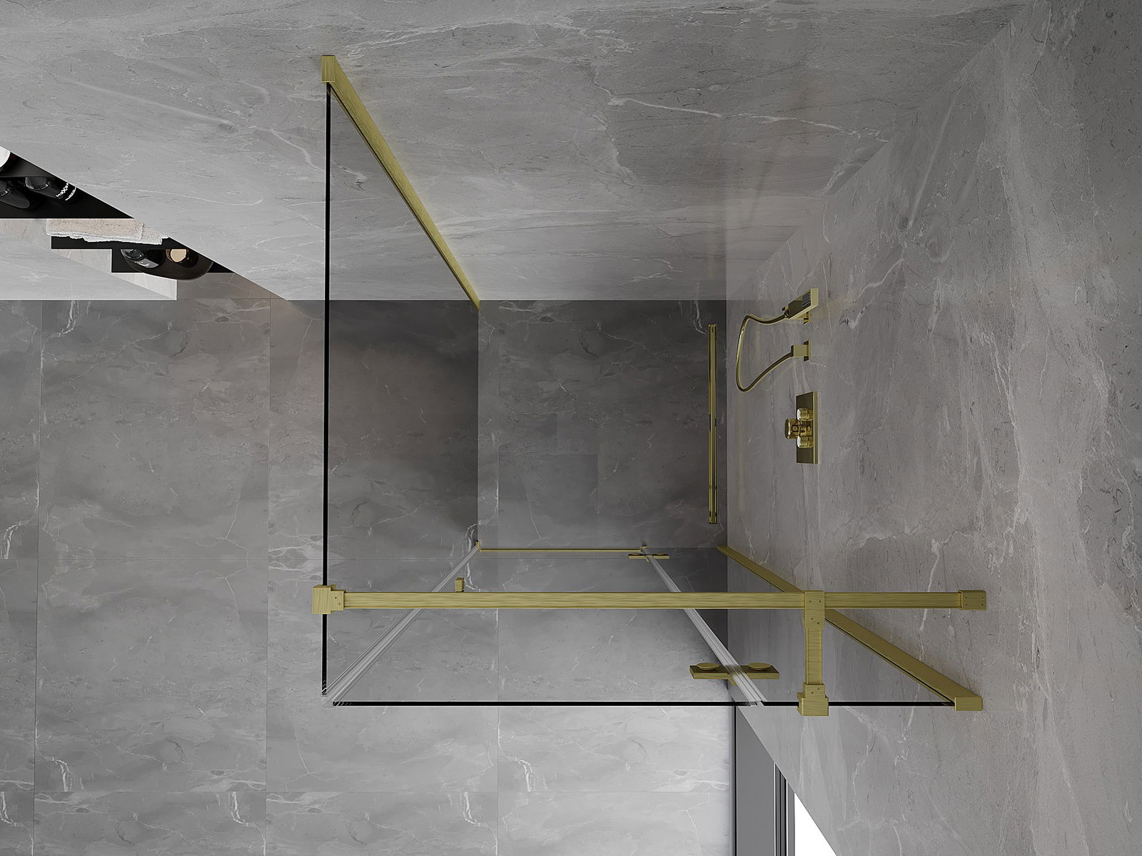 Mexen Mist H T Duschkabine, öffnend, rechts, 95 x 95 cm, transparent, gebürstetes Gold - 8A5T-095-095-55-00-P