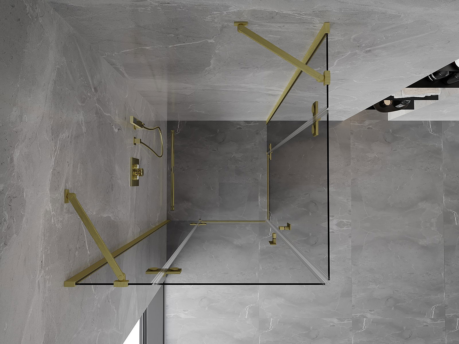 Mexen Mist H Duo Duschkabine Schwingtür 105 x 105 cm, transparent, gebürstetes Gold - 8A5-105L-105P-55-00