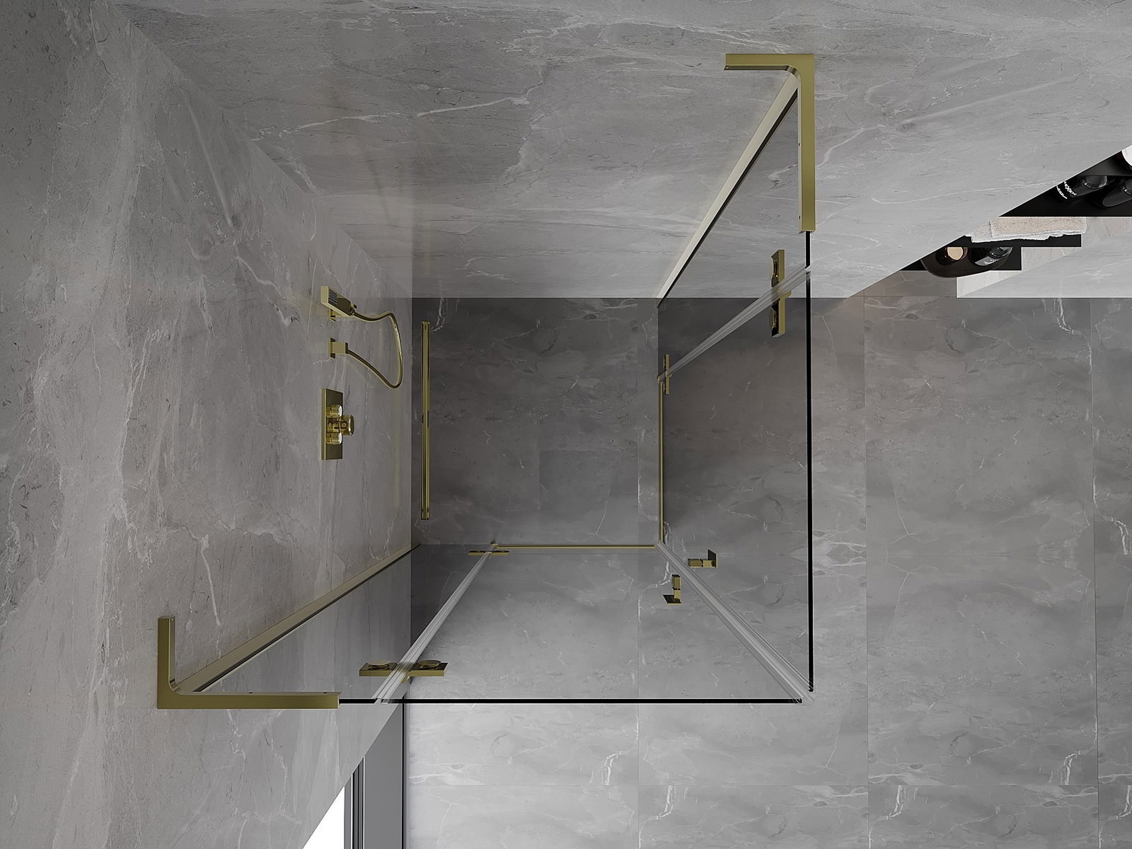 Mexen Mist-H L Duo Duschkabine, öffnend, 70 x 70 cm, transparent, gold - 8A5L-070L-070P-50-00