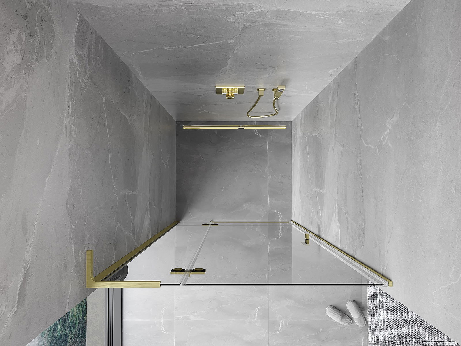Das Produkt kann je nach Bedarf sowohl auf einer Duschwanne als auch direkt auf dem Boden montiert werden. Die universelle Montagemethode ermöglicht die Anpassung des Produkts an verschiedene Arten von Badezimmern und Raumkonfigurationen.