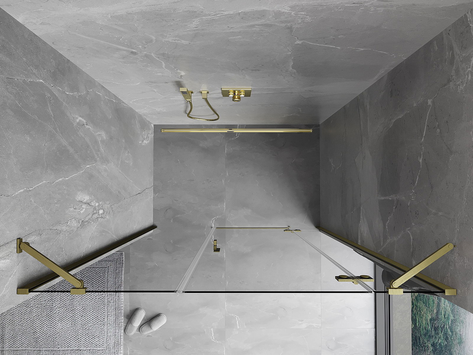 Das Produkt kann je nach Bedarf sowohl auf einer Duschwanne als auch direkt auf dem Boden montiert werden. Die universelle Montagemethode ermöglicht die Anpassung des Produkts an verschiedene Arten von Badezimmern und Raumkonfigurationen.