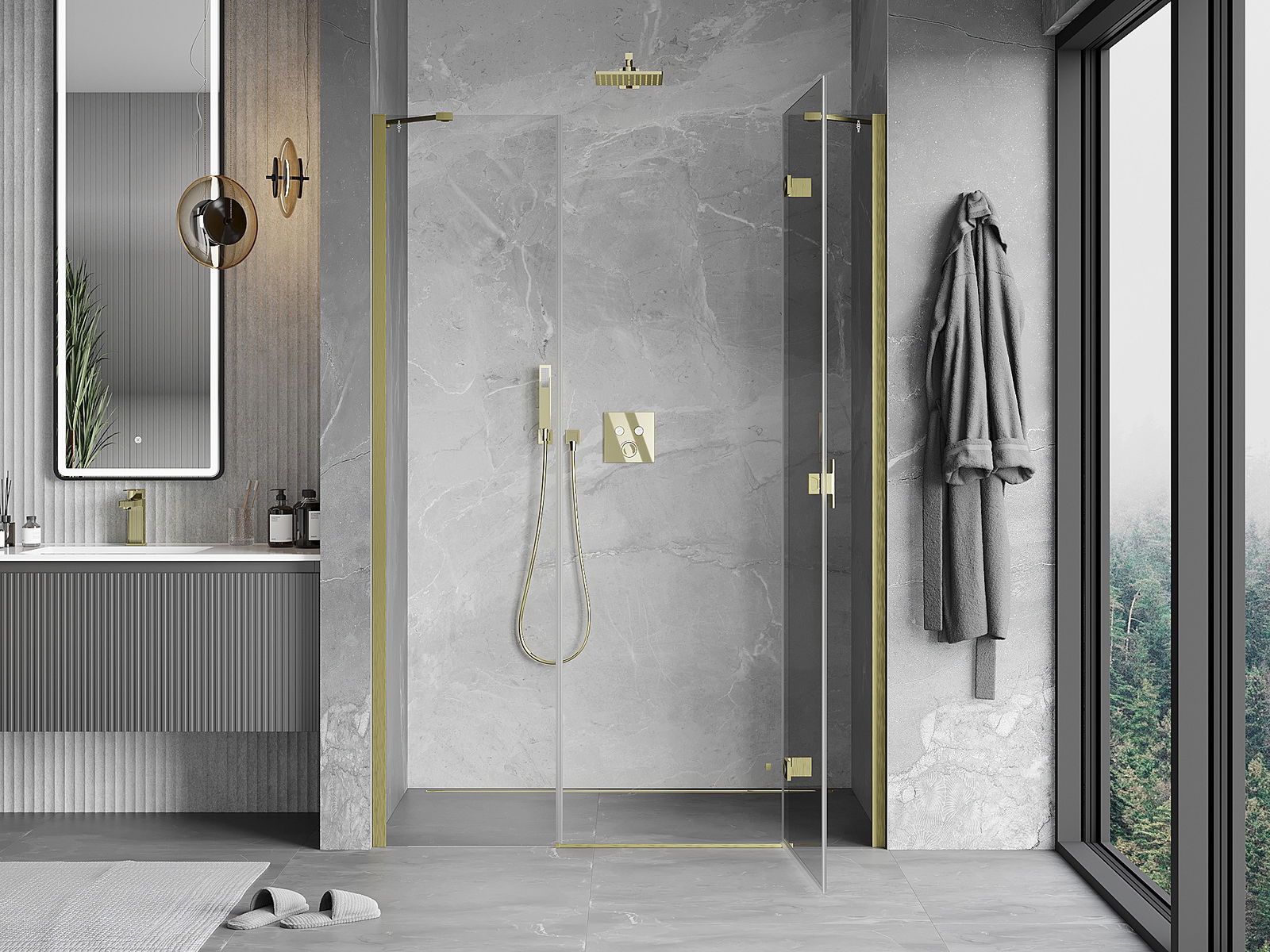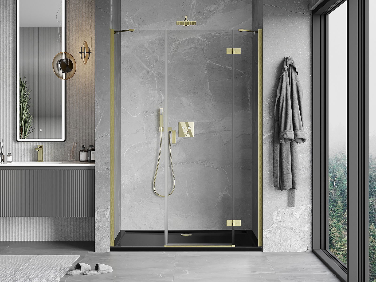 Der handliche und bequeme Griff besteht aus langlebigem und widerstandsfähigem Metall. Die modische Form in Kombination mit einer farblich auf die Profile abgestimmten Oberflächenveredelung verleiht dem Ganzen ein modernes und stilvolles Erscheinungsbild und betont die Ästhetik jedes Badezimmers.